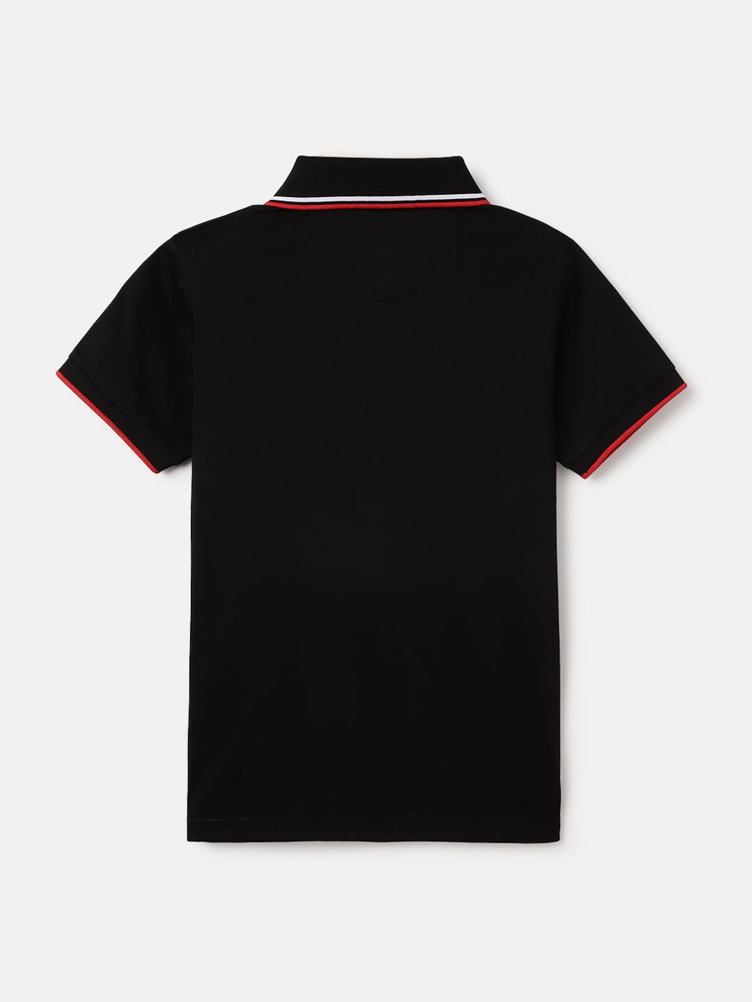 This black polo t-shirt is perfect for boys who want a stylish and comfortable look. It features a regular fit short sleeve design with a polo collar and button closure. Made from pure mercerized cotton the t-shirt is soft and breathable. The stretchable fabric ensures a comfortable fit. The pu zipper adds a touch of style and the metal giraffe transfer makes it unique.