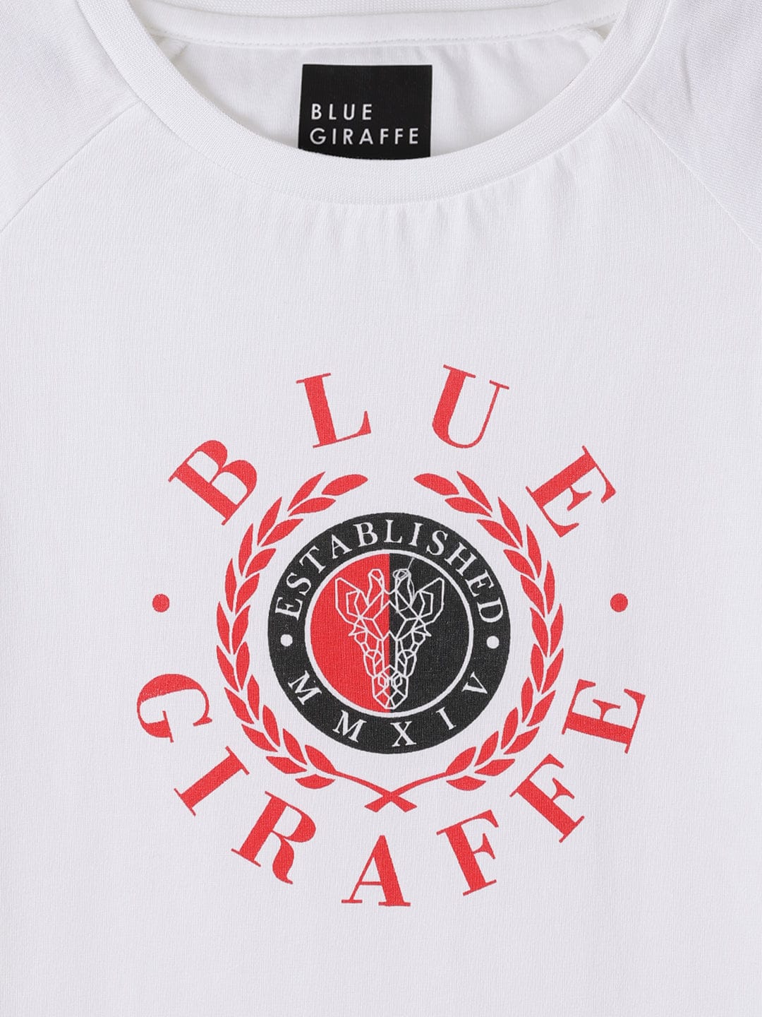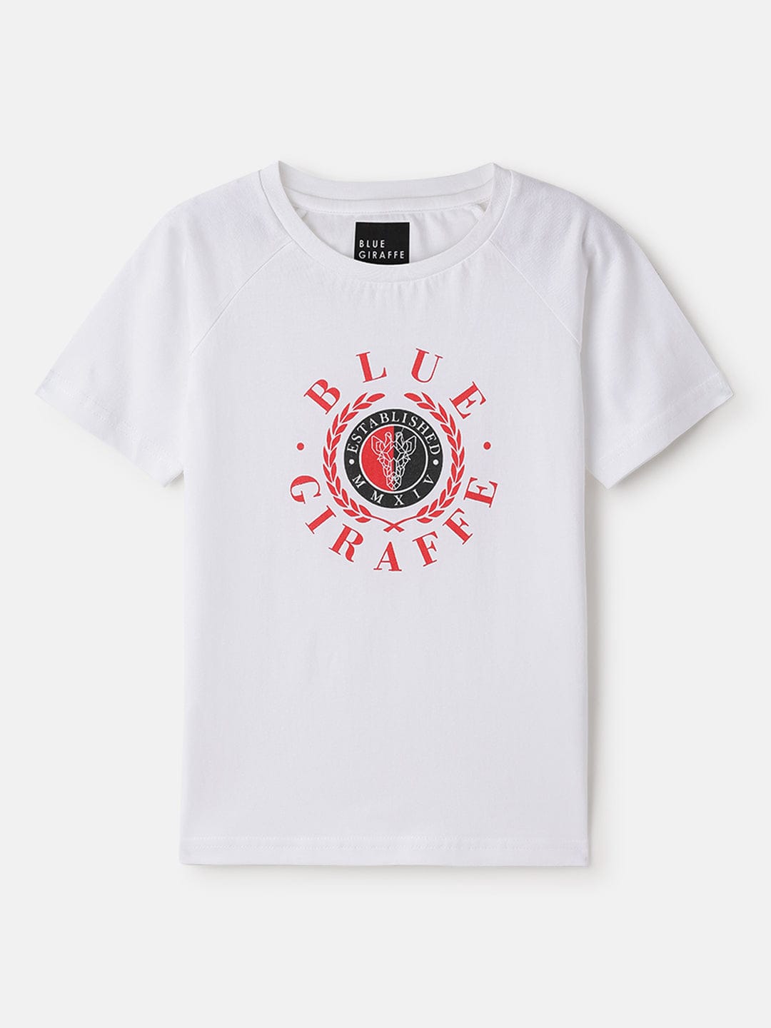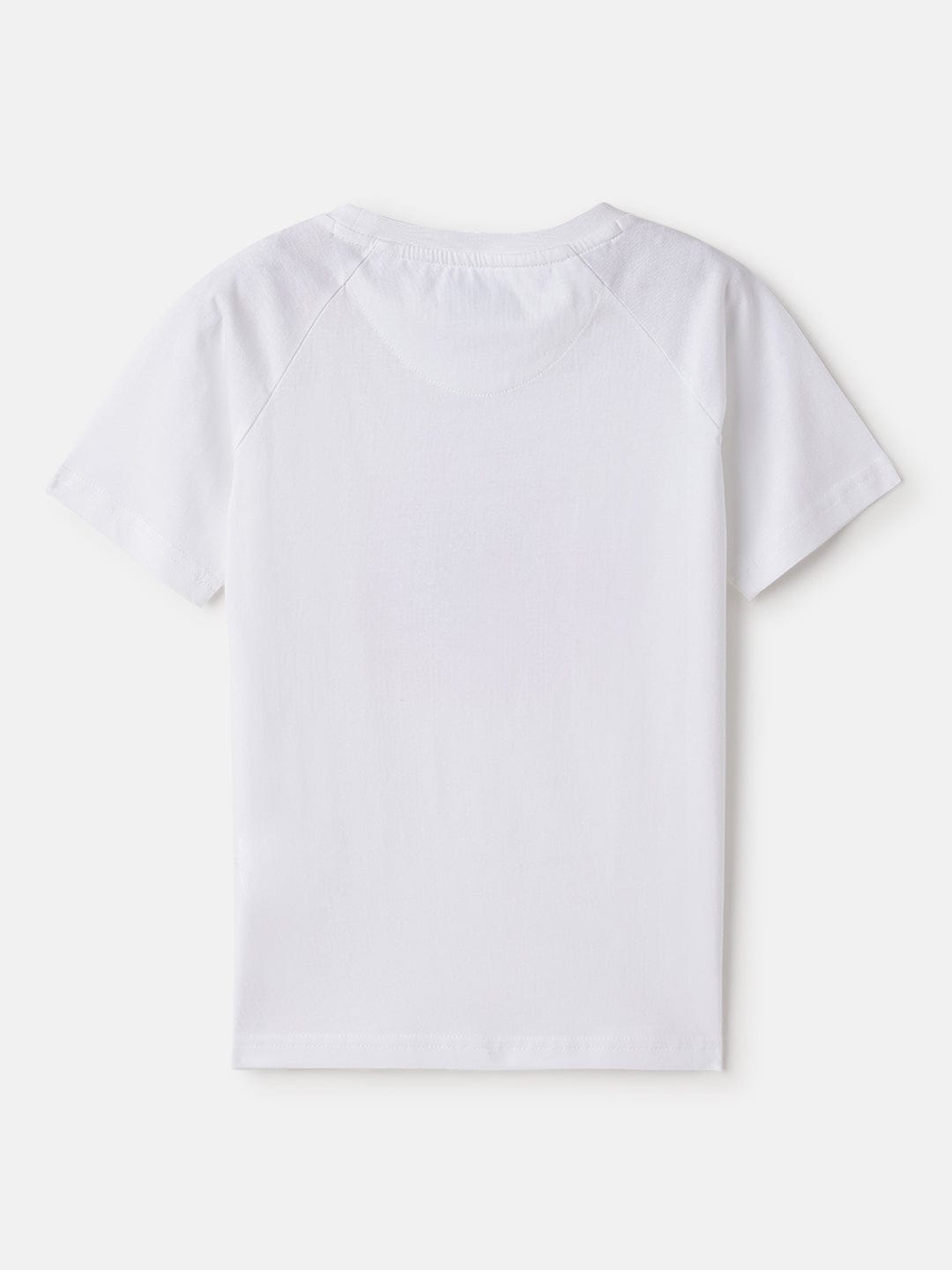 This white t-shirt is perfect for boys who love a classic look. It features a typography pattern and a regular fit for a comfortable feel. The short sleeves and round neck make it easy to wear and the pure cotton fabric is soft and breathable. The pull-on closure makes it easy to get on and off.