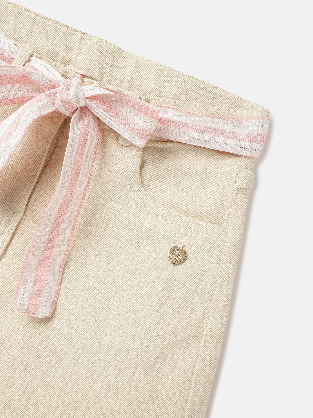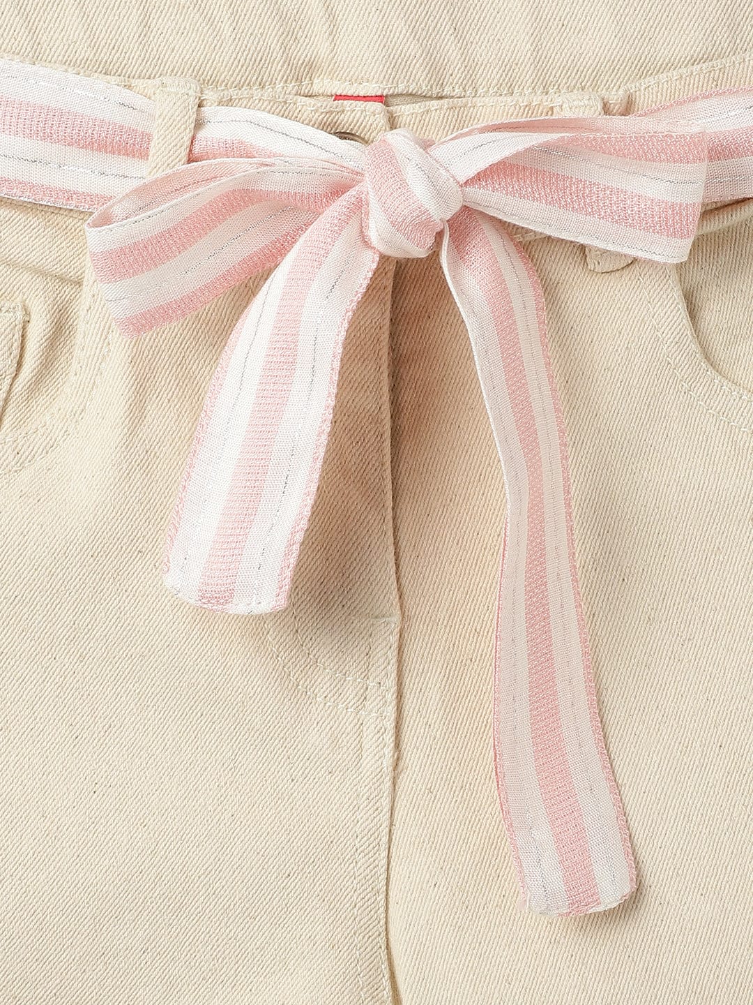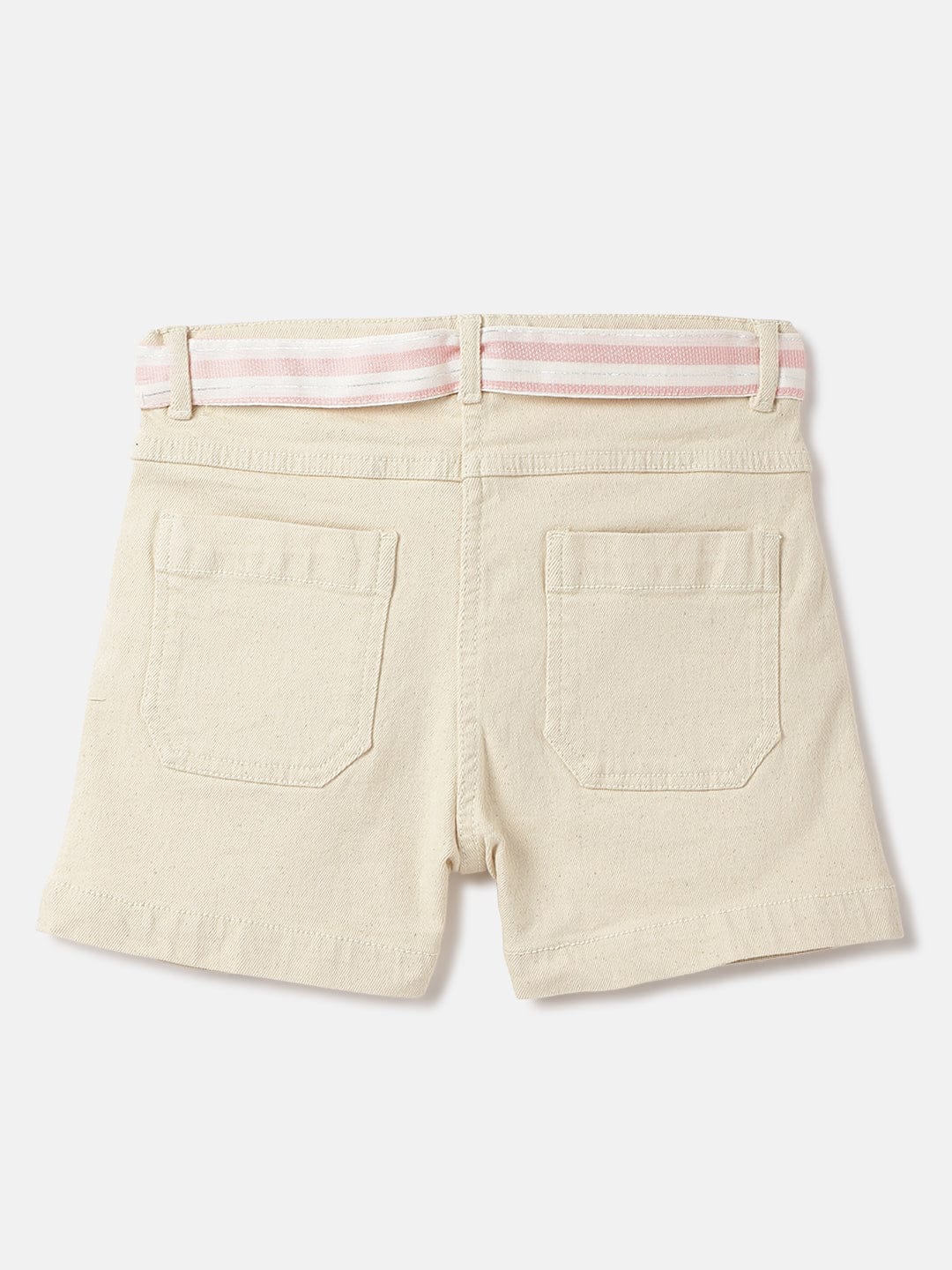 Blue Giraffe Girls Cream Regular Fit Solid Shorts
