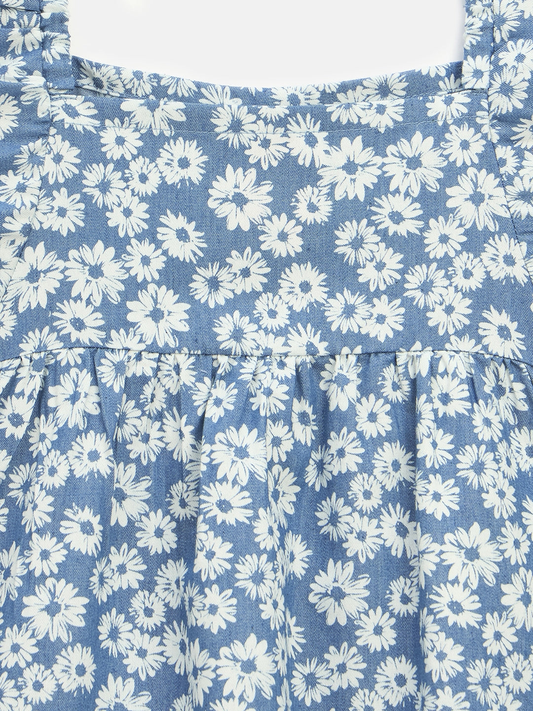 Discover the perfect blend of style and comfort with our blue floral print top for girls. Crafted from pure cotton, this top ensures breathability and softness for all-day wear. The flared fit adds a touch of elegance, making it ideal for both casual outings and special occasions. Featuring a charming all-over floral pattern, it brings a fresh and vibrant look to any wardrobe. The square neck design offers a modern twist, while the pull-on closure ensures easy dressing. Elevate your fashion game with this versatile and chic top.