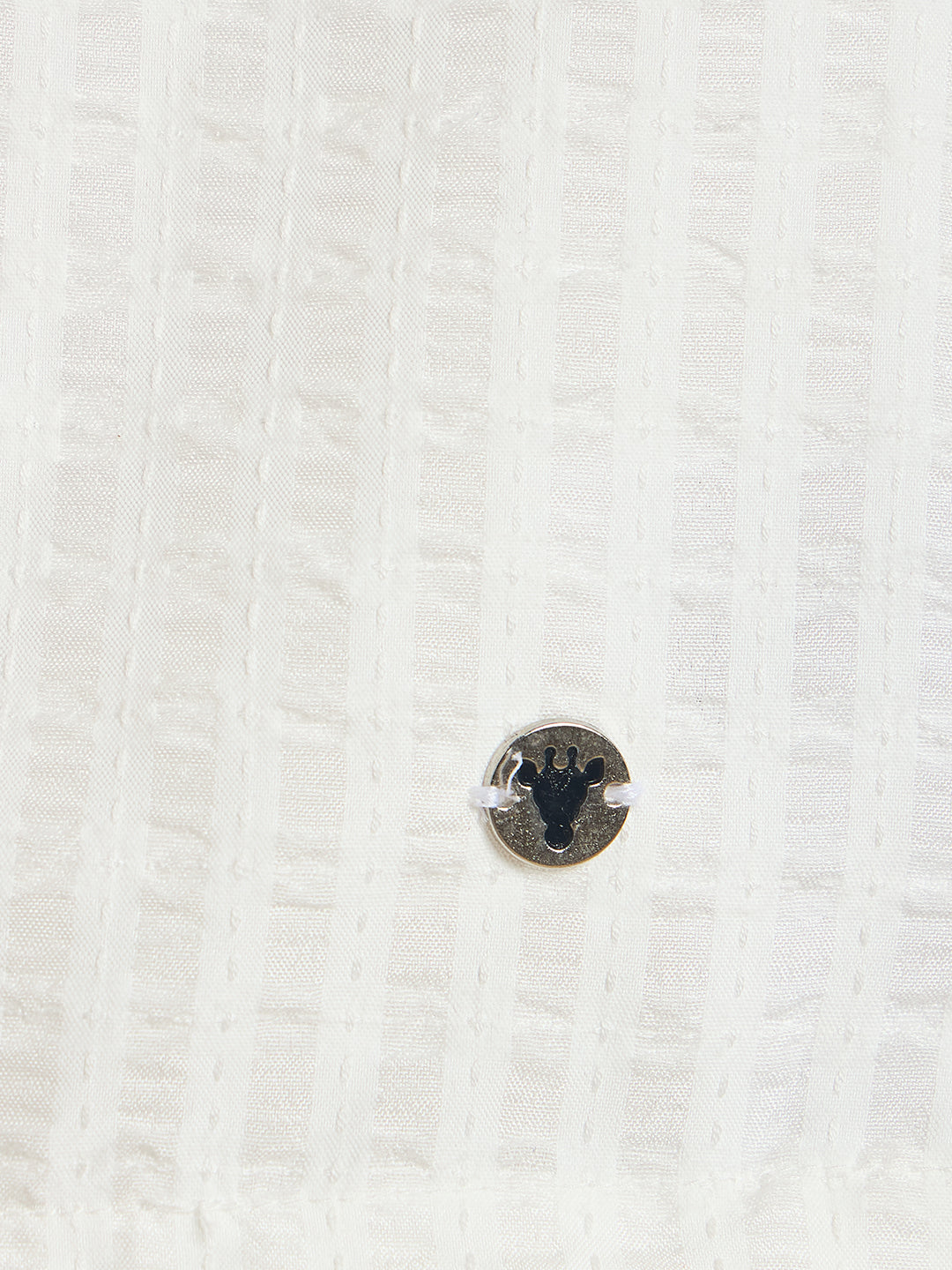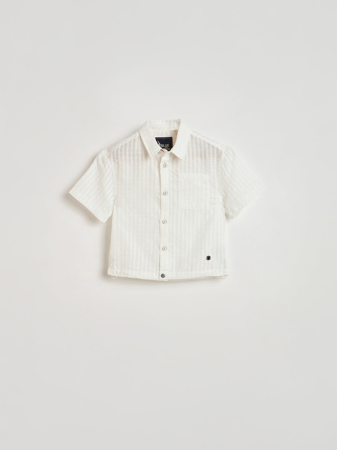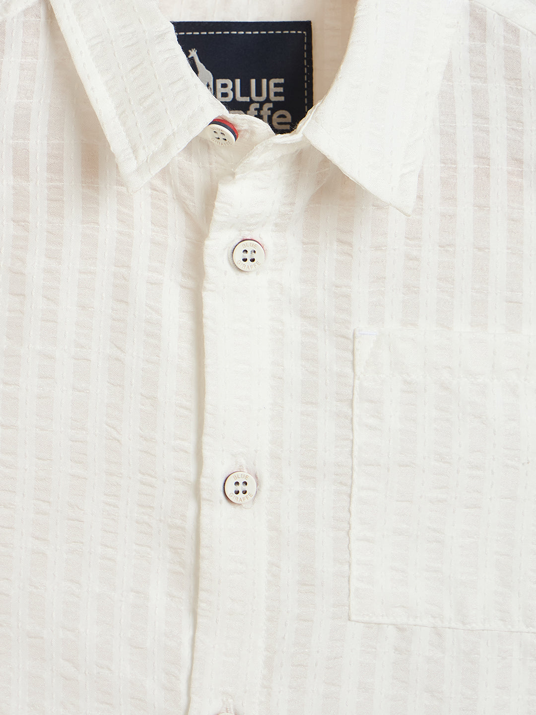 Introducing the Blue Giraffe Boys White Striped Shirt, a must-have addition to any young gentle men's wardrobe. This stylish shirt features a classic white base with bold blue stripes, perfect for adding a touch of sophistication to any outfit. Made from high-quality materials, this shirt is not only fashionable but also comfortable for all-day wear. Whether for a special occasion or everyday wear, this shirt is versatile and timeless. Elevate your little one's style with the Blue Giraffe Boys White Striped Shirt.