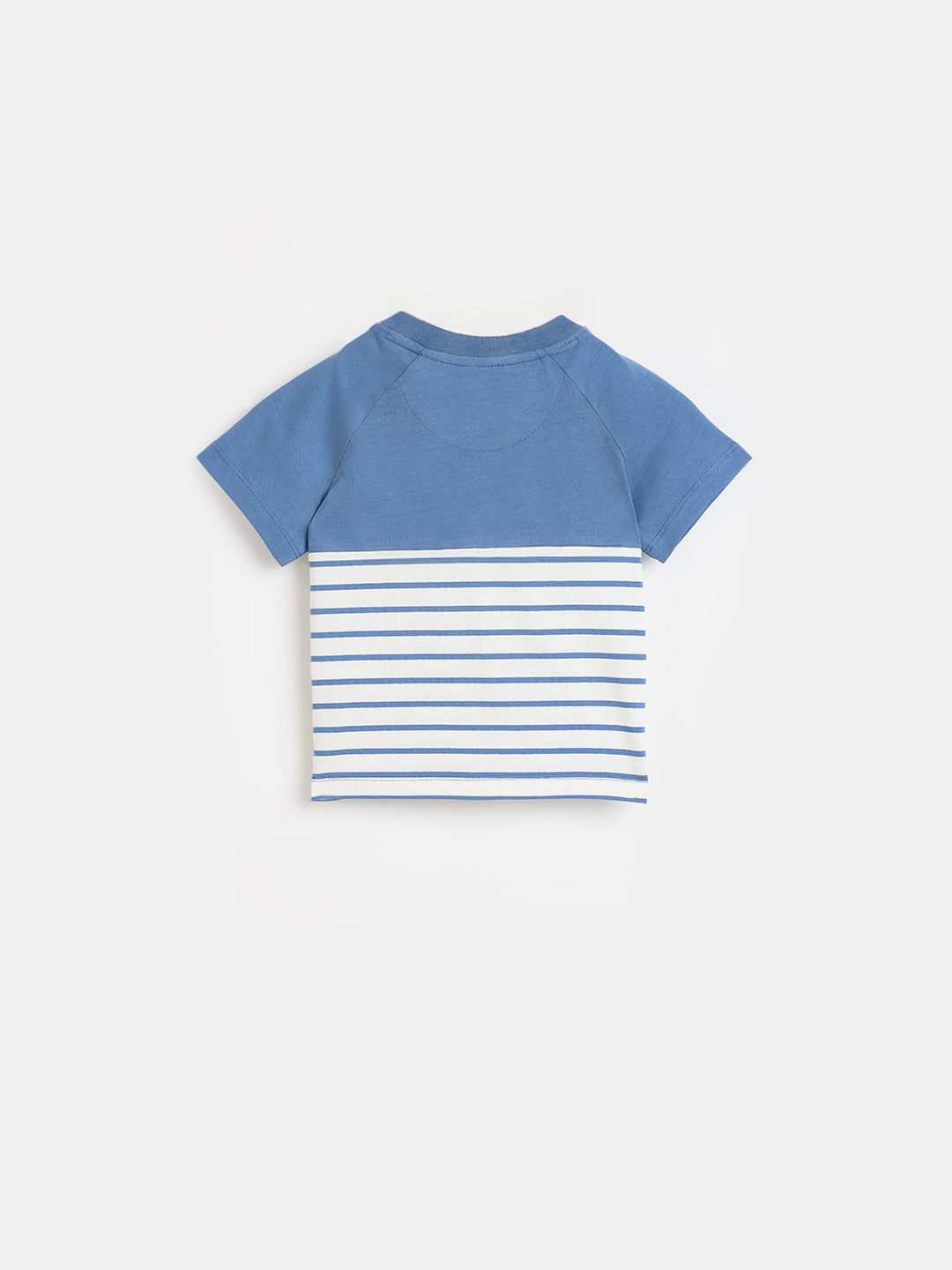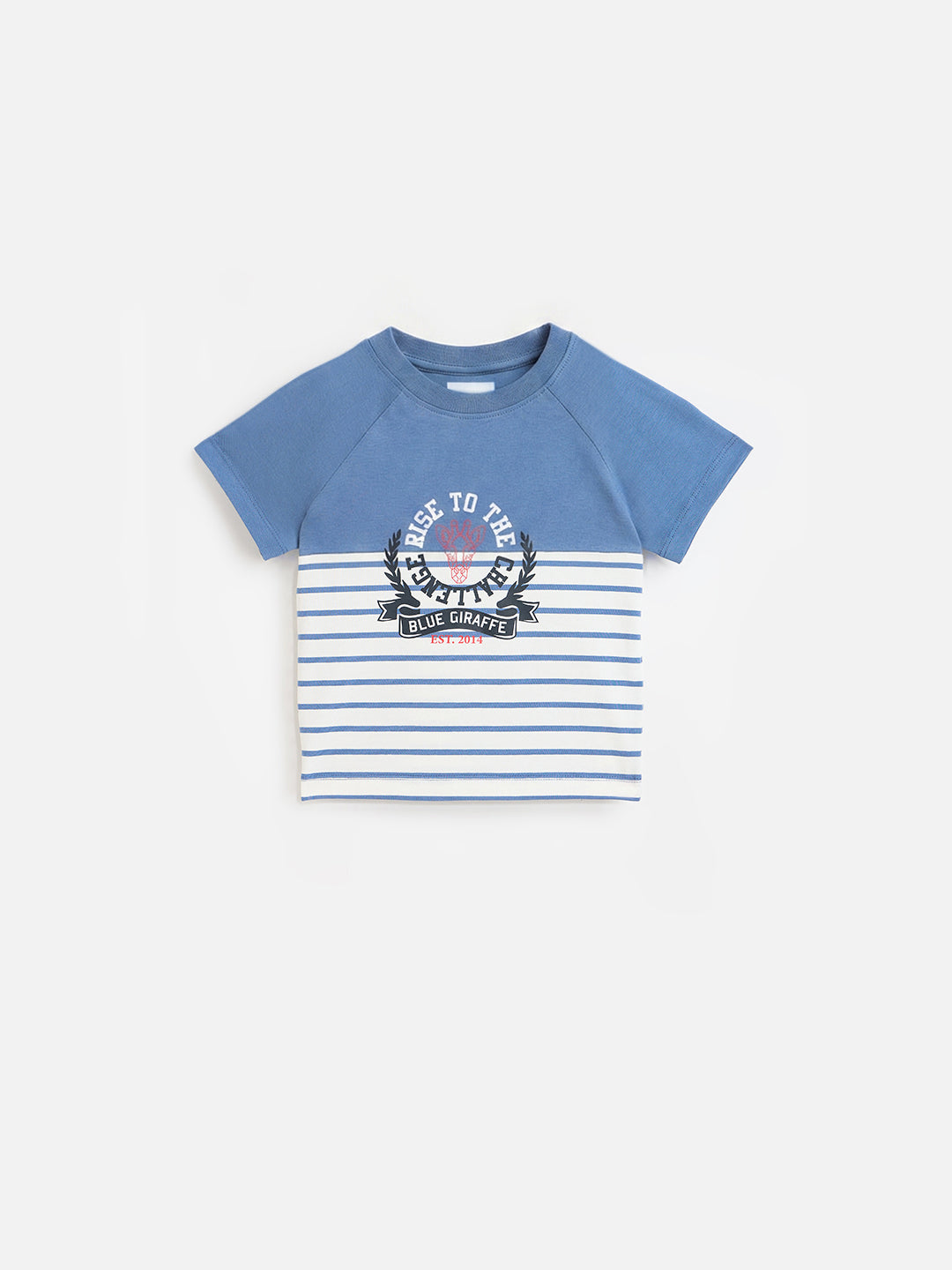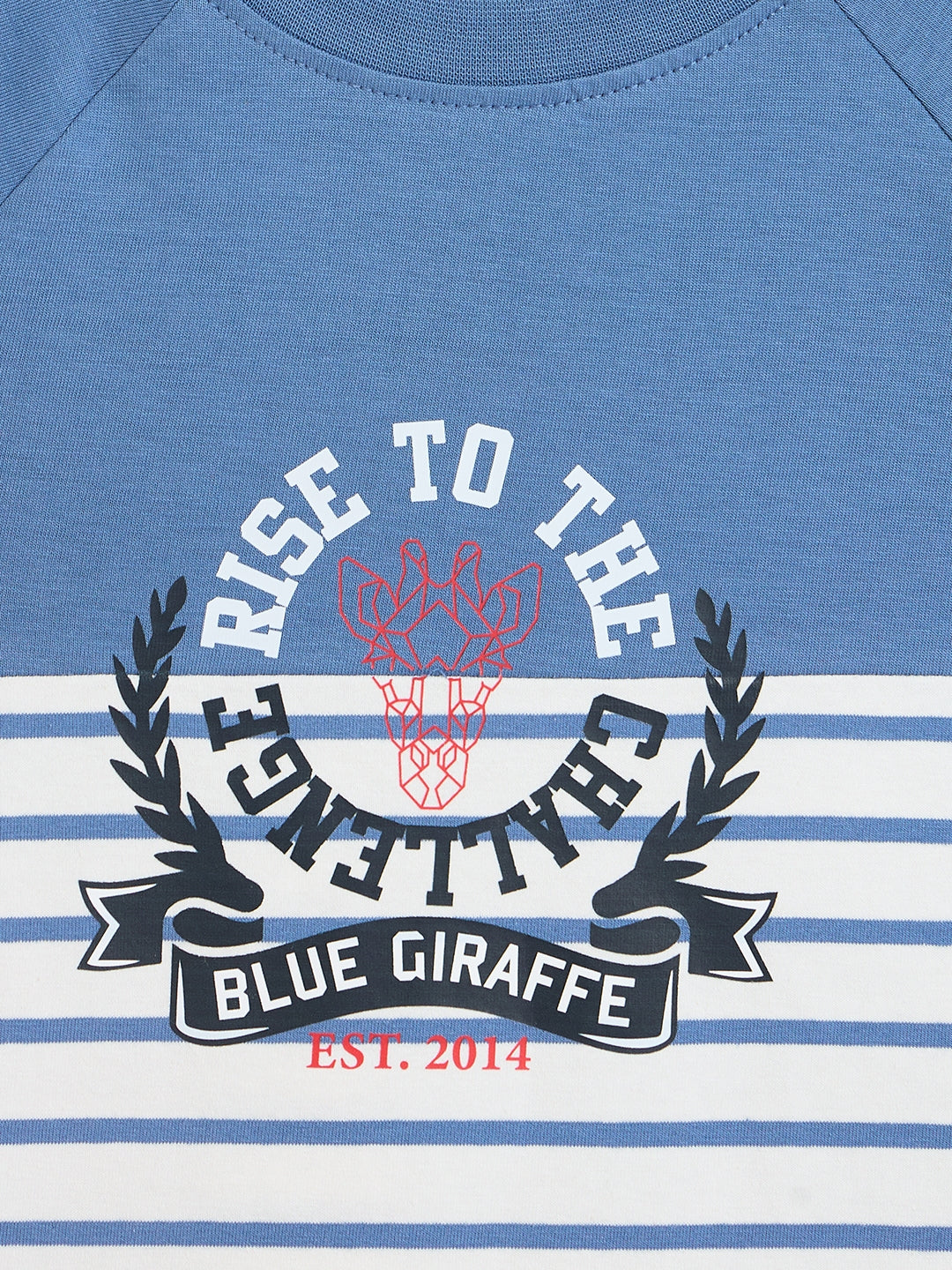 Blue Giraffe Boys Blue Striped Crew Neck T-Shirt