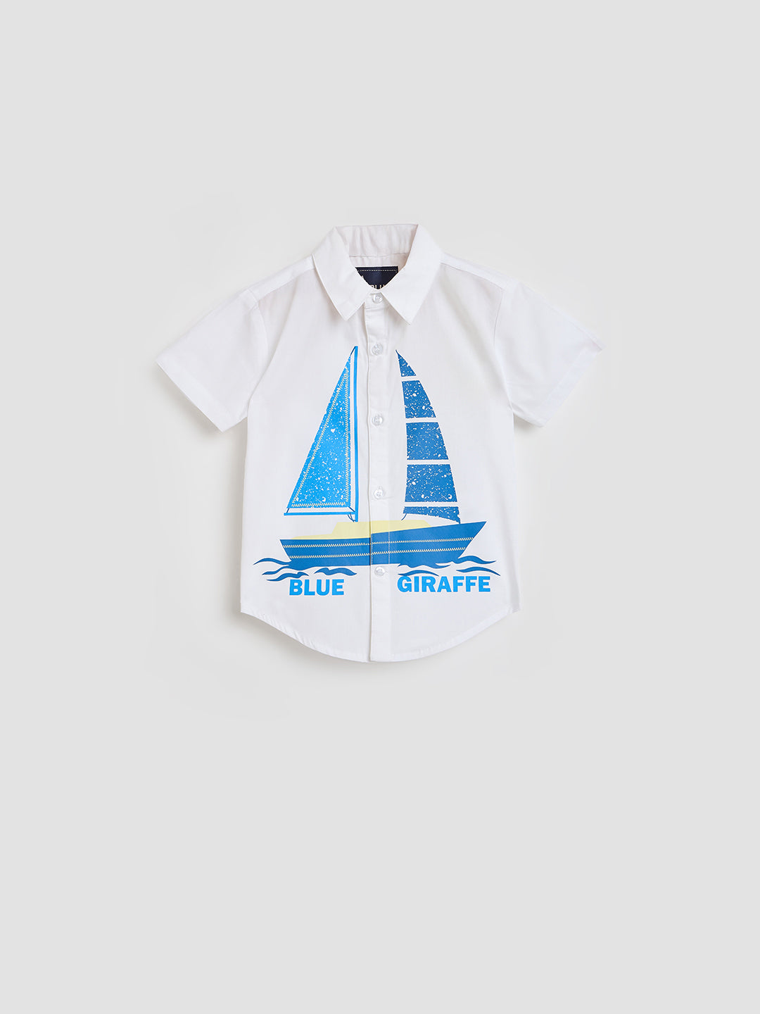 Elevate your little one's style with the Blue Giraffe Boys White Printed Shirt. Made from soft, breathable fabric, this shirt features a unique and eye-catching print that will make your child stand out in the crowd. Whether it's a casual playdate or a special occasion, this shirt is versatile and comfortable. The classic white color makes it easy to pair with any bottoms, making it a wardrobe staple. Add a touch of fun and flair to your boy's outfit with this must-have shirt.
