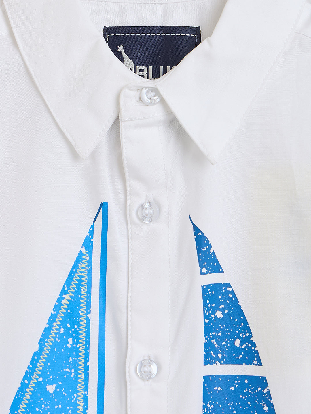 Blue Giraffe Boys White Printed Shirt