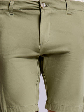 Introducing Bruun & Stengade's iconic Men Green Solid Regular Fit Shorts, crafted from 100% cotton for a comfortable fit.