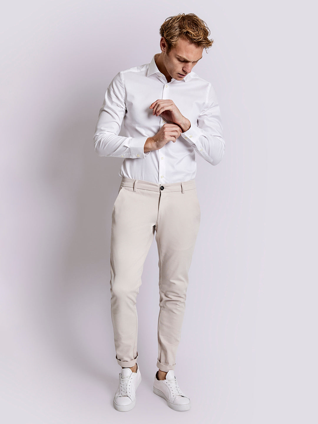 Bruun & Stengade's iconic Men Sand Solid Trouser is a classic staple. Crafted with 98% Cotton and 2% Elastane, it offers a slim fit with a hint of stretch.