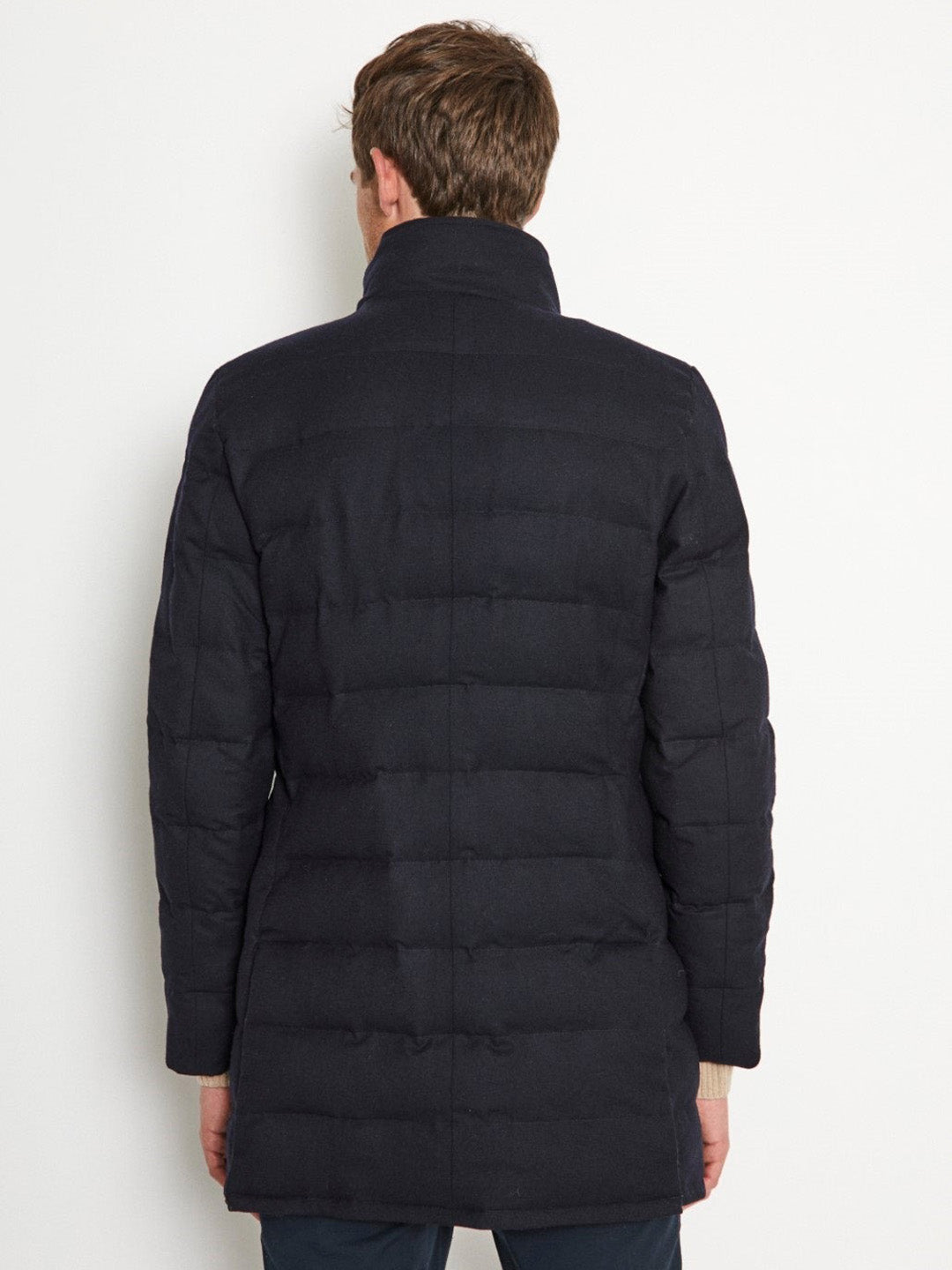 Bruun & Stengade Men Blue Solid Stand Collar Long Sleeves Overcoat