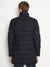 Men Blue Solid Stand Collar Long Sleeves Overcoat