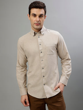 Introducing our stylish Button Down Shirt in Beige. Crafted with full sleeves and a slim fit, this shirt is perfect for any occasion. Its solid color adds a touch of sophistication, making it a must-have for your wardrobe. Upgrade your style with this versatile and trendy piece.