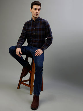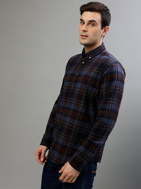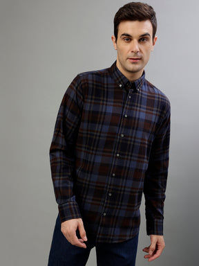 Brown & Blue Fashion Checked Regular Fit Shirt