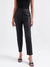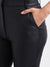 Elevate your elegance with these Black Solid Straight Fit Trousers.