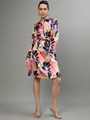Centre Stage Women Printed Collar Full Sleeves Dress