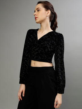 Centre Stage Women Solid V Neck Full Sleeves Top