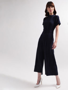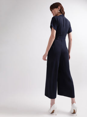 -Centre Stage Womens Straight Fit Jumpsuit With Zip Closure And Tie Up Belt