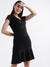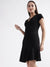 A daring silhouette in sleek black, this asymmetrical dress features a flattering V-neckline, short sleeves, and a pull-on closure for effortless style. Crafted from smooth polyester, it drapes beautifully and moves with you, making it perfect for any occasion.