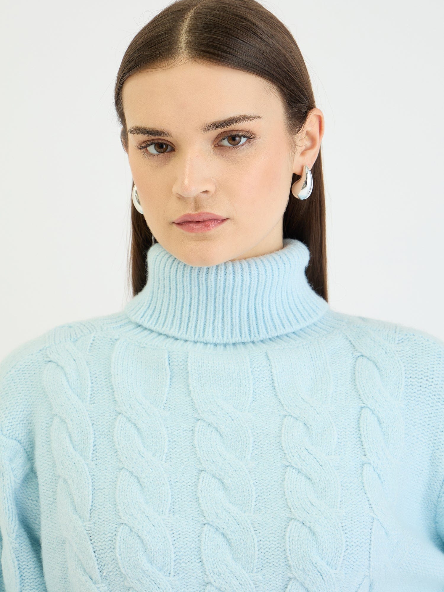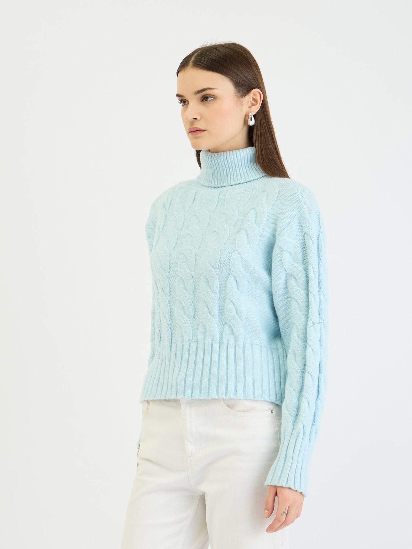 Embrace cozy chic with this timeless cable knit sweater. Crafted from soft polyester, it features a classic cable knit pattern for a touch of texture. The turtleneck adds warmth and style, while the regular fit ensures a comfortable and flattering silhouette. The full sleeves provide ample coverage, and the slip-on closure makes for easy wear. This versatile sweater is perfect for layering or wearing solo, making it a must-have for your fall and winter wardrobe.