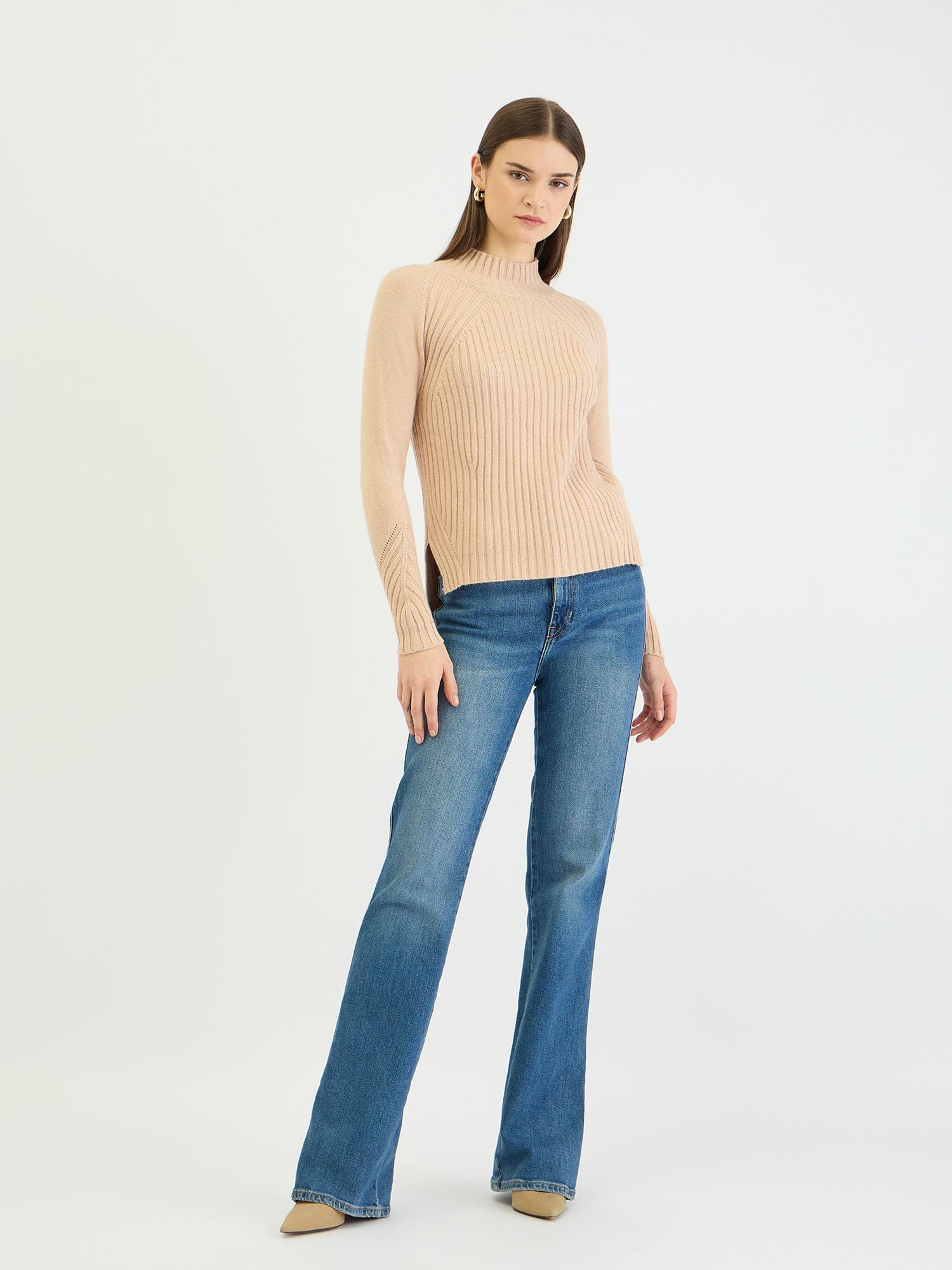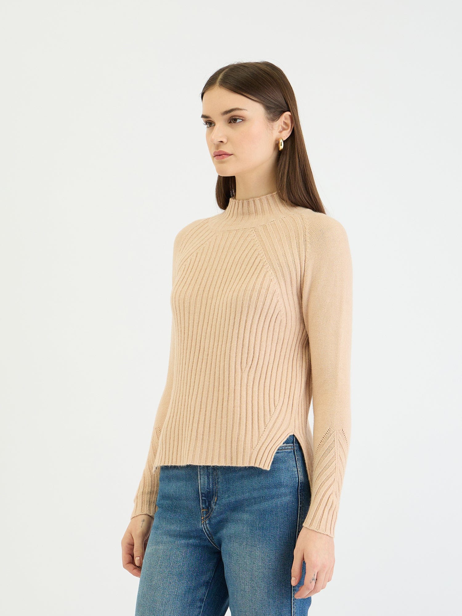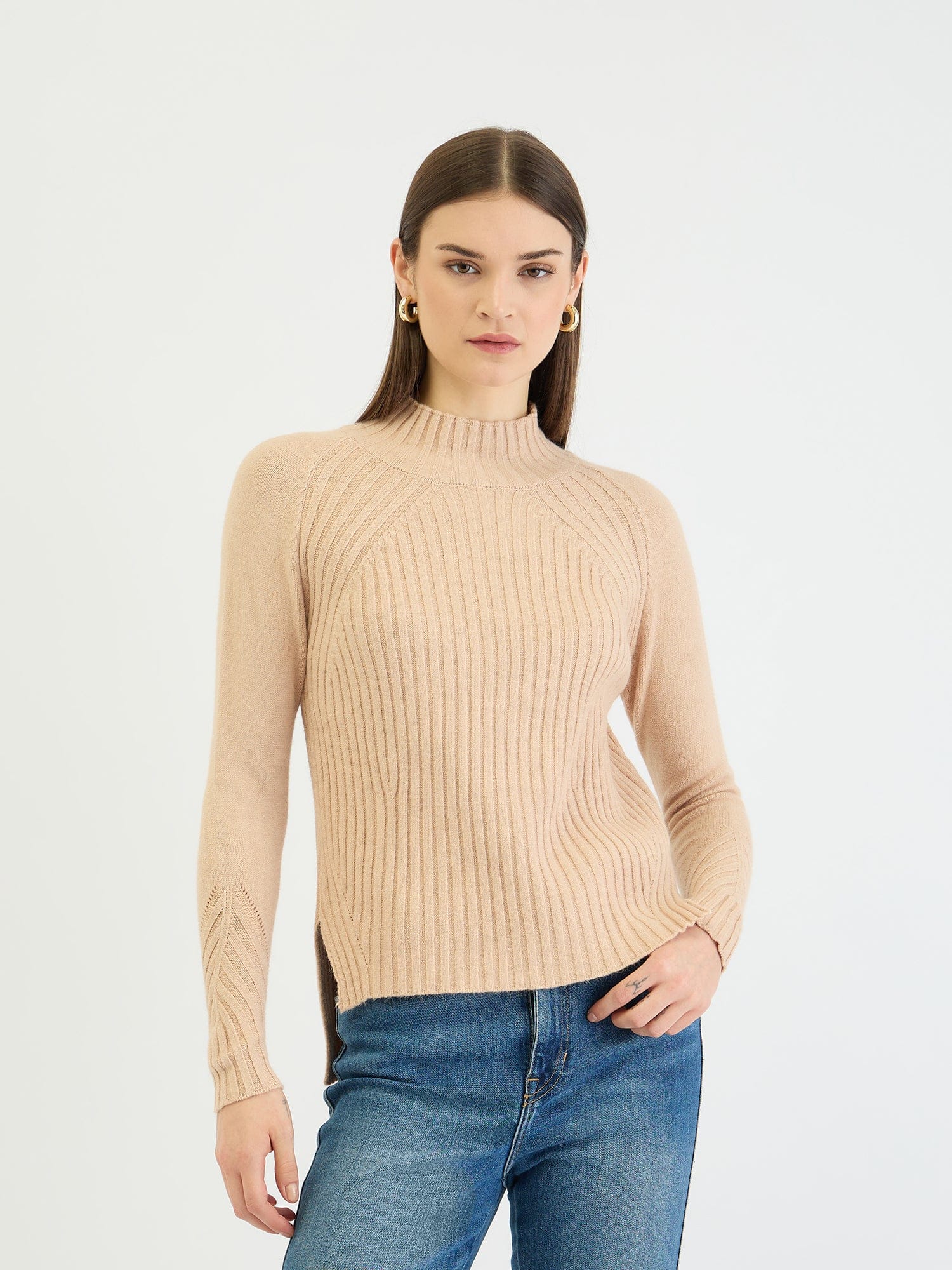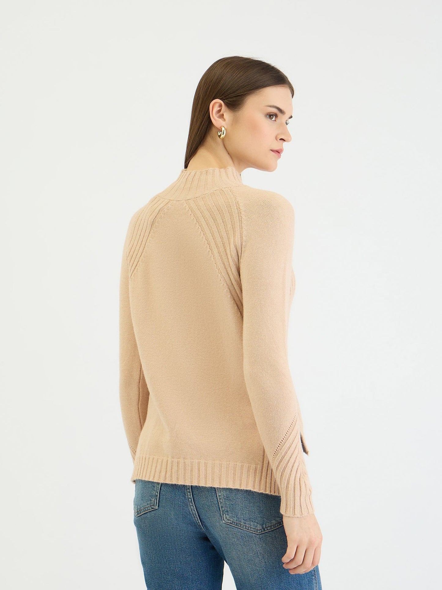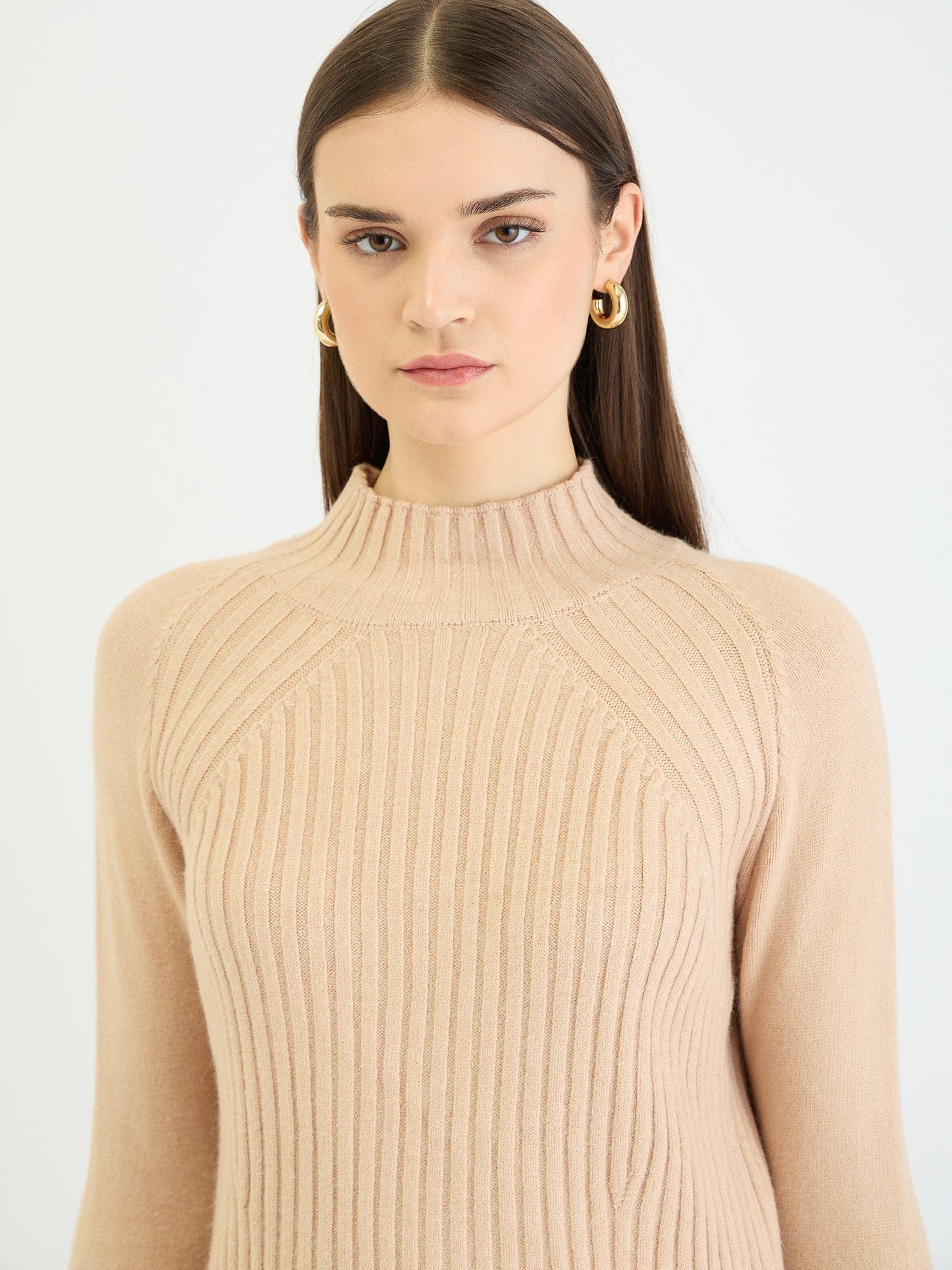 Embrace effortless style with this cozy ribbed knit sweater. Crafted from soft polyester, it features a classic turtleneck, full sleeves, and a flattering regular fit. The ribbed pattern adds texture and dimension, while the beige hue complements any wardrobe. Simply slip it on for a chic and comfortable look that's perfect for everyday wear.