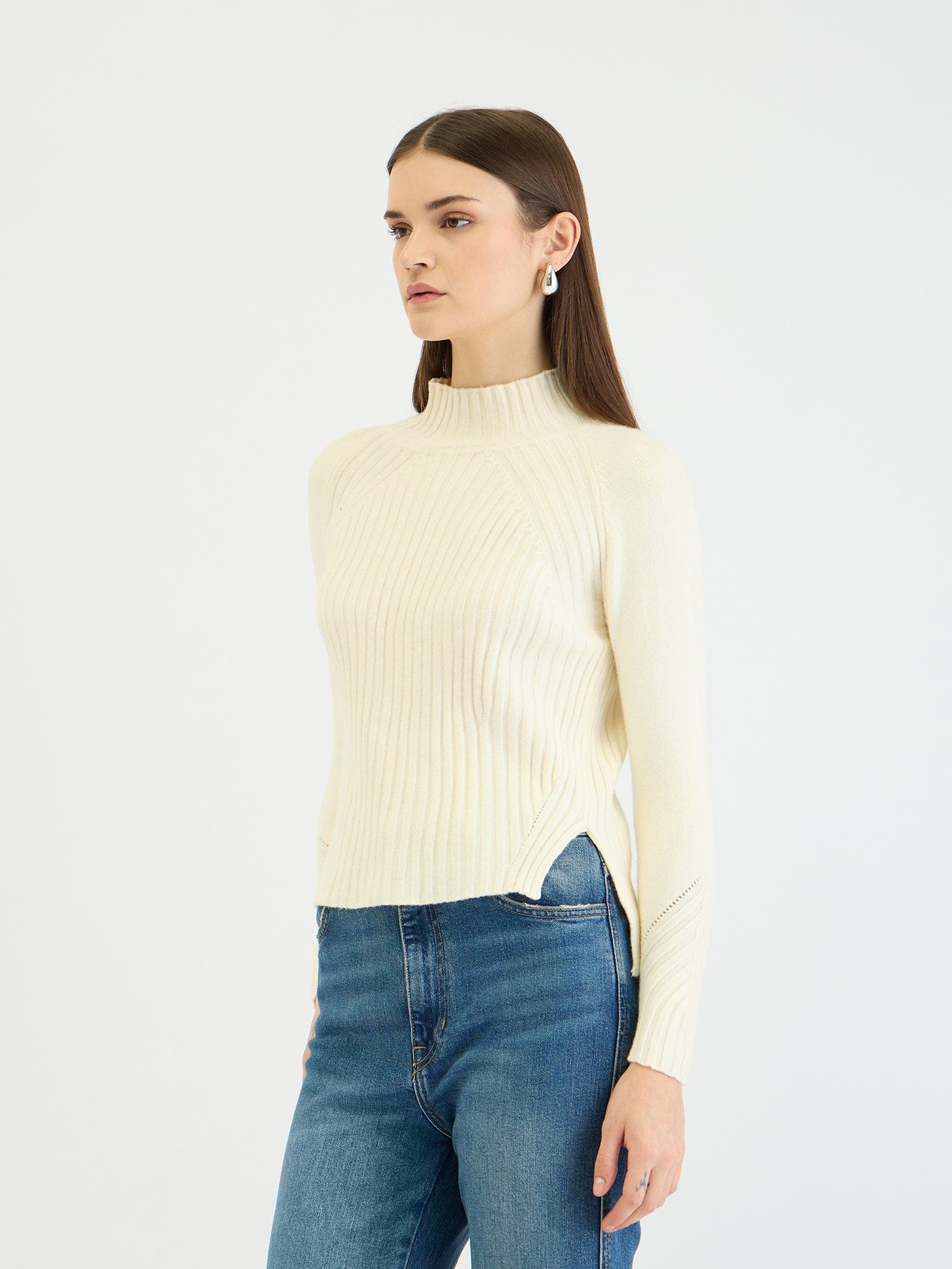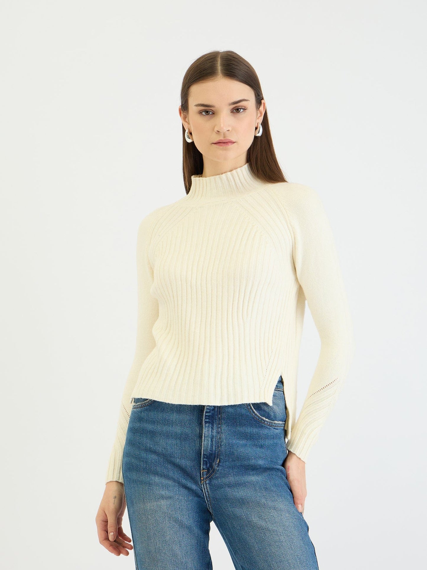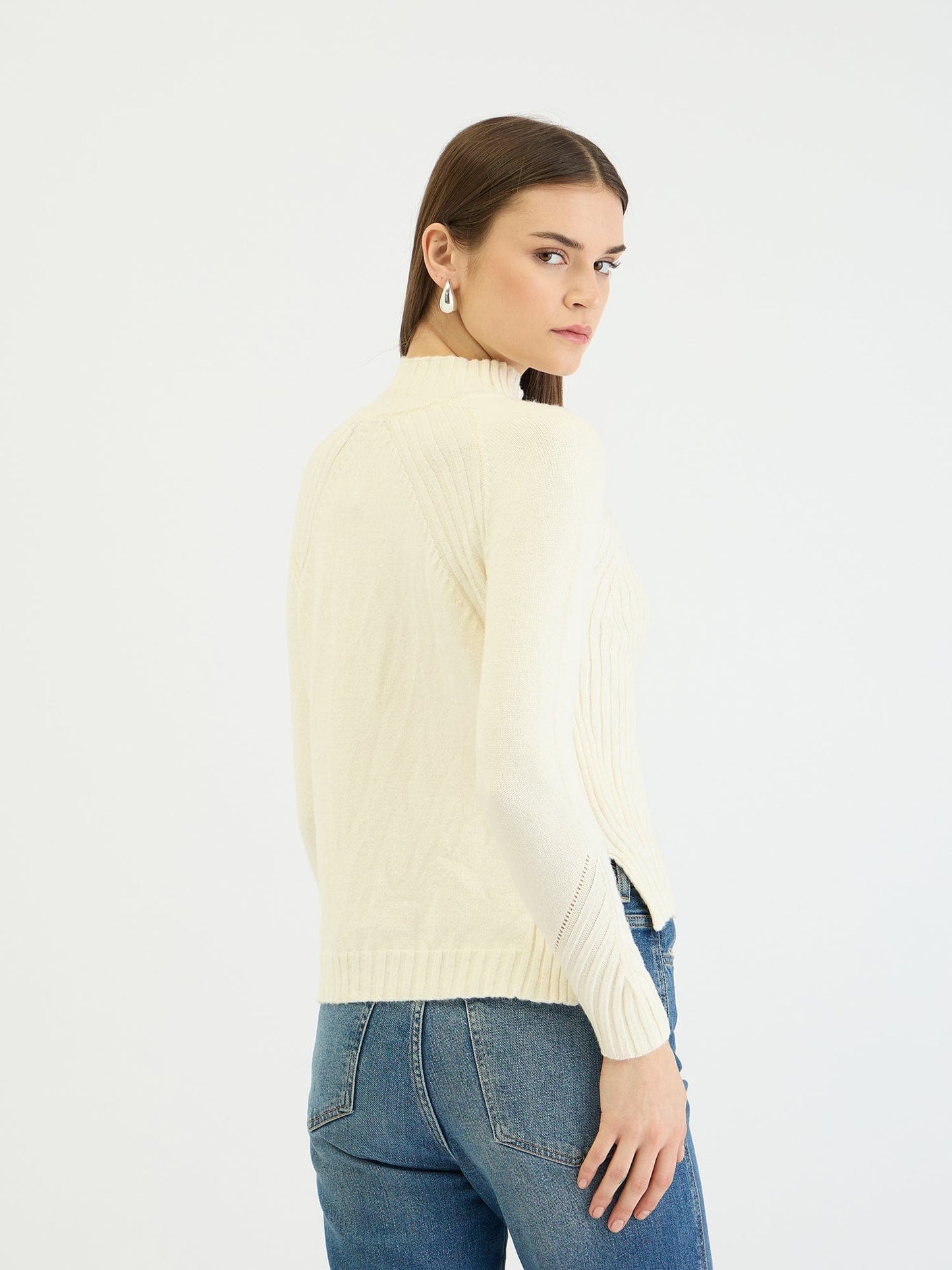 Embrace effortless chic with this creamy ribbed knit sweater. Crafted from soft polyester, it features a flattering regular fit, a cozy turtleneck, and full sleeves for warmth and style. The classic ribbed pattern adds texture and dimension, while the slip-on closure ensures easy wear. Perfect for layering or wearing solo, this versatile sweater is a must-have for any wardrobe.