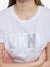 DKNY Women White Printed Round Neck Short Sleeves Tshirt