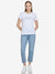 Experience comfort and style with this white, regular fit t-shirt for women. It features a chic printed pattern, half sleeves, and a classic round neck. Crafted from a blend of cotton and modal fabric, it ensures breathability. The pull-on closure adds to its convenience.