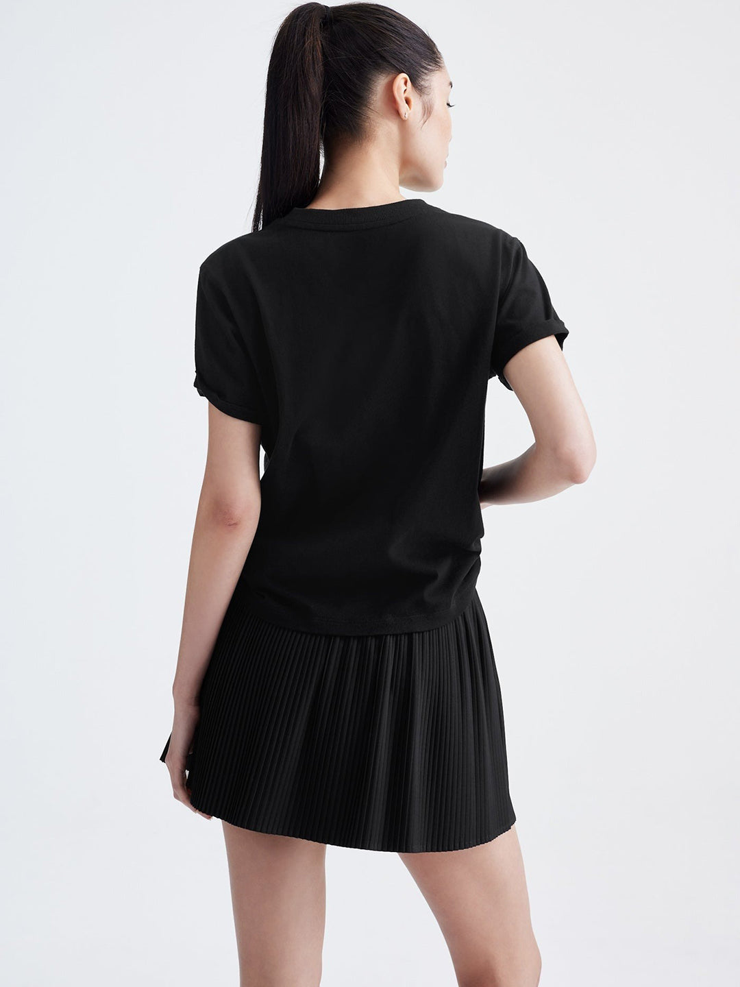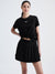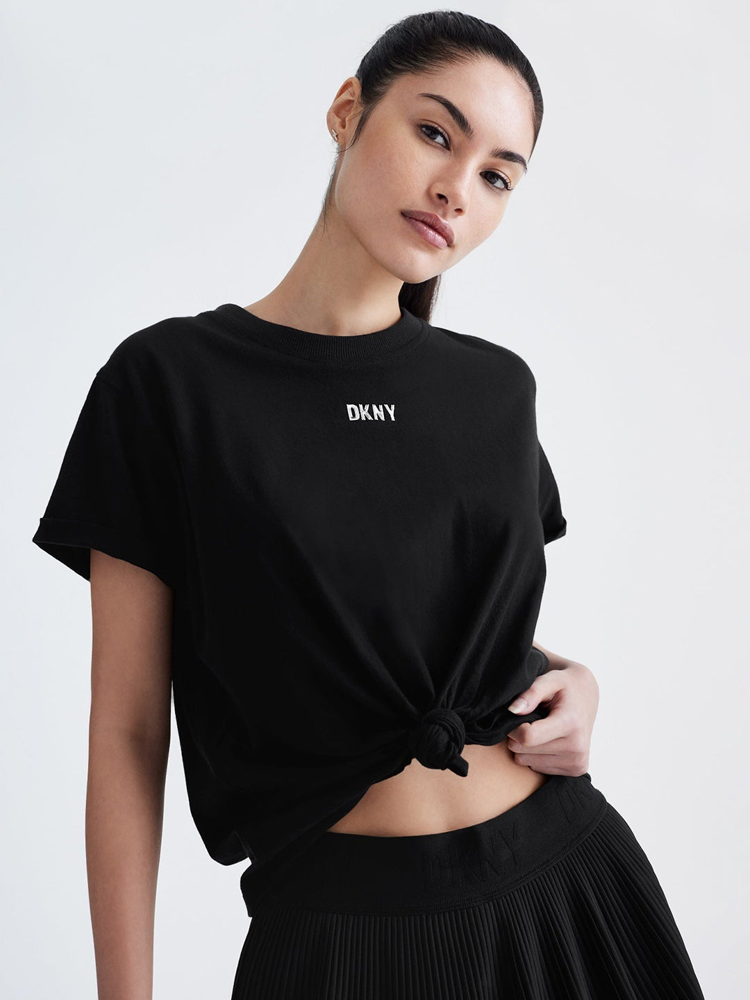 Dkny Women Black Solid Round Neck Short Sleeves Top
