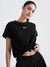 Experience comfort and style with this black, regular fit top for women. Designed with a solid pattern, short sleeves, and a round neck, it's made from breathable cotton fabric. Perfect for any casual or semi-formal occasion.
