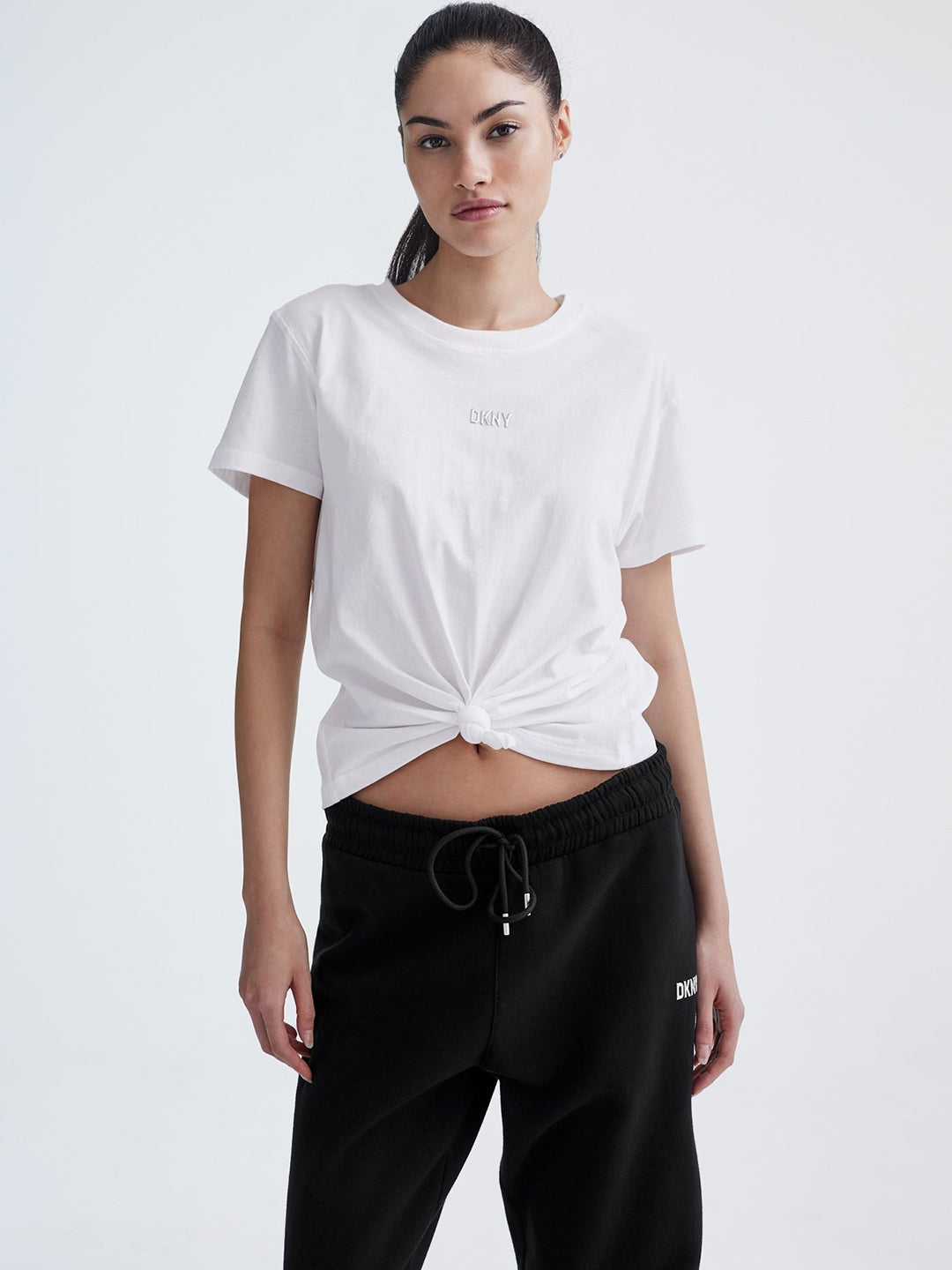 Dkny Women White Solid Round Neck Short Sleeves Top
