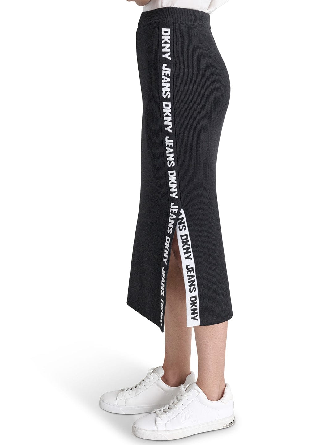 Discover the perfect blend of style and comfort with our black pencil skirt, designed for the modern woman. This fitted skirt features a textured pattern that adds a touch of sophistication to any outfit. Crafted from a high-quality cotton blend fabric, it offers a comfortable stretch that moves with you throughout the day. The mid-rise design and elastic closure ensure a flattering fit, while the solid side tape detail adds a contemporary edge. Whether you're dressing for the office or a night out, this versatile skirt is an essential addition to your wardrobe, offering both elegance and ease.