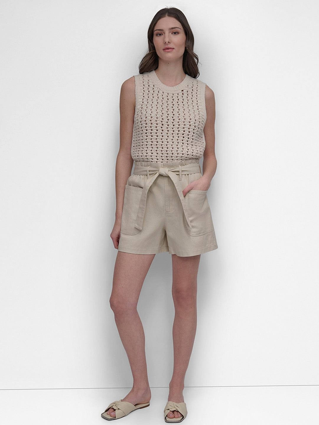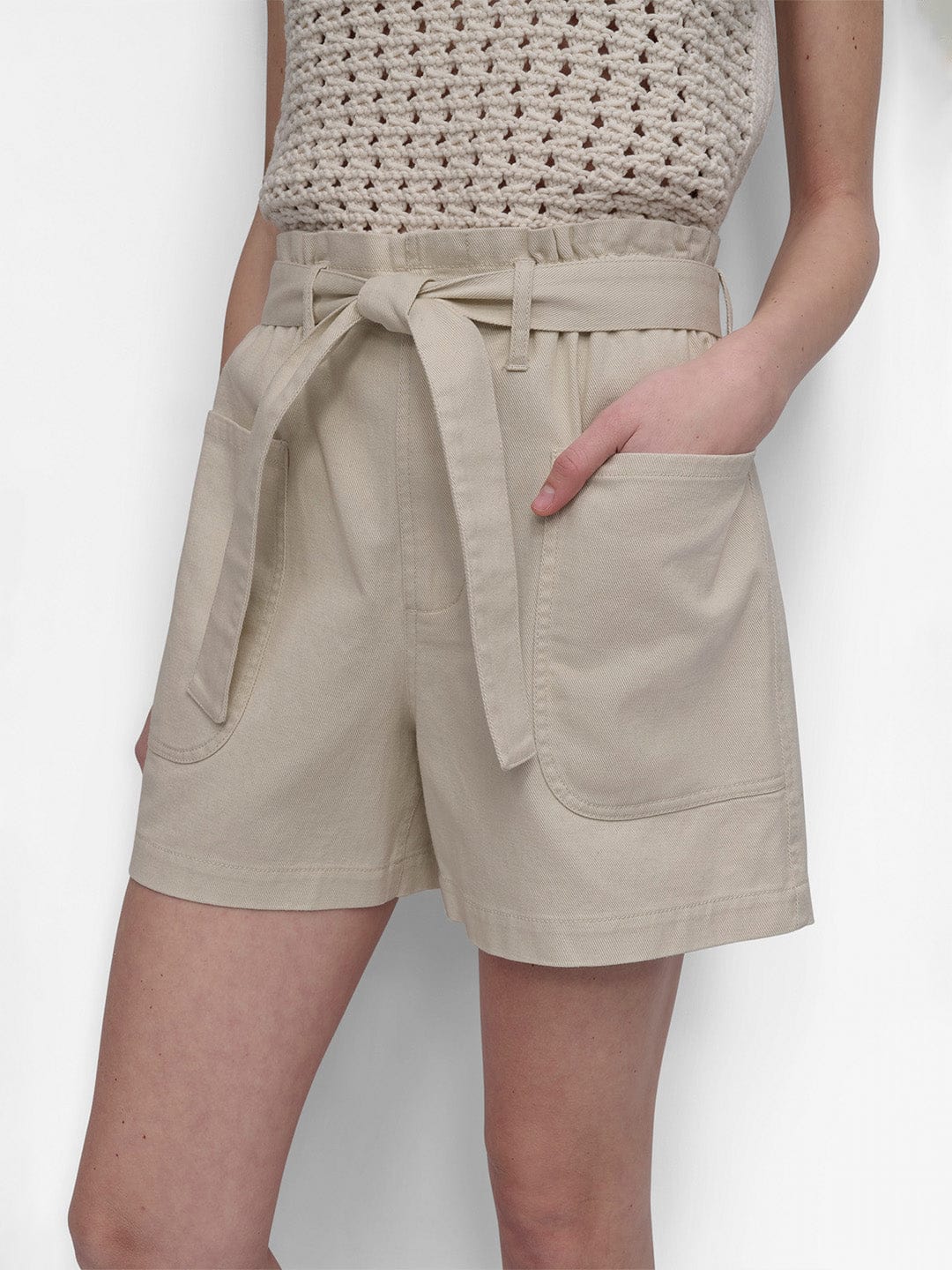 Discover the perfect blend of style and comfort with our paperbag waist shorts in a timeless beige color. Designed for women who appreciate both fashion and functionality, these shorts feature a straight fit that flatters every silhouette. The high-rise design accentuates your waist, while the button-belted closure adds a touch of sophistication. Crafted from pure cotton fabric, these shorts ensure breathability and ease of movement, making them ideal for warm weather. The solid pattern offers versatility, allowing you to pair them effortlessly with your favorite tops. Elevate your wardrobe with these chic and comfortable shorts today.