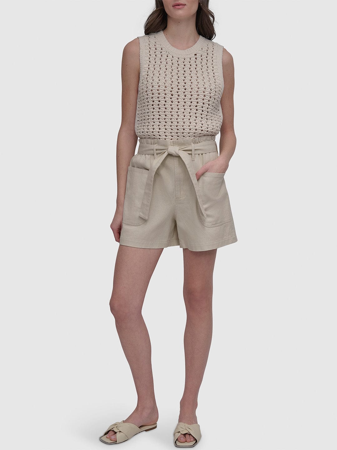 DKNY Women Beige Straight Fit Solid Shorts