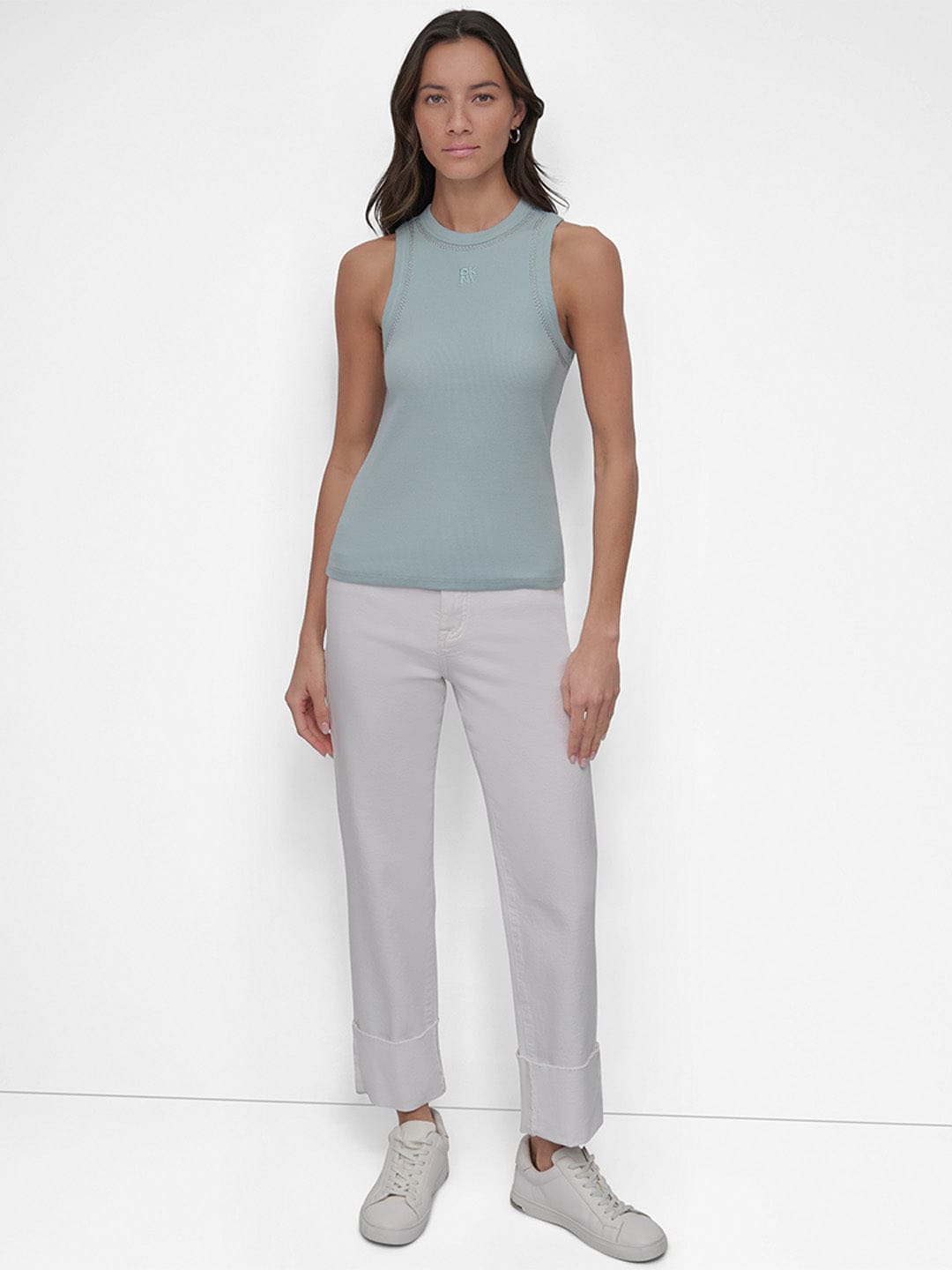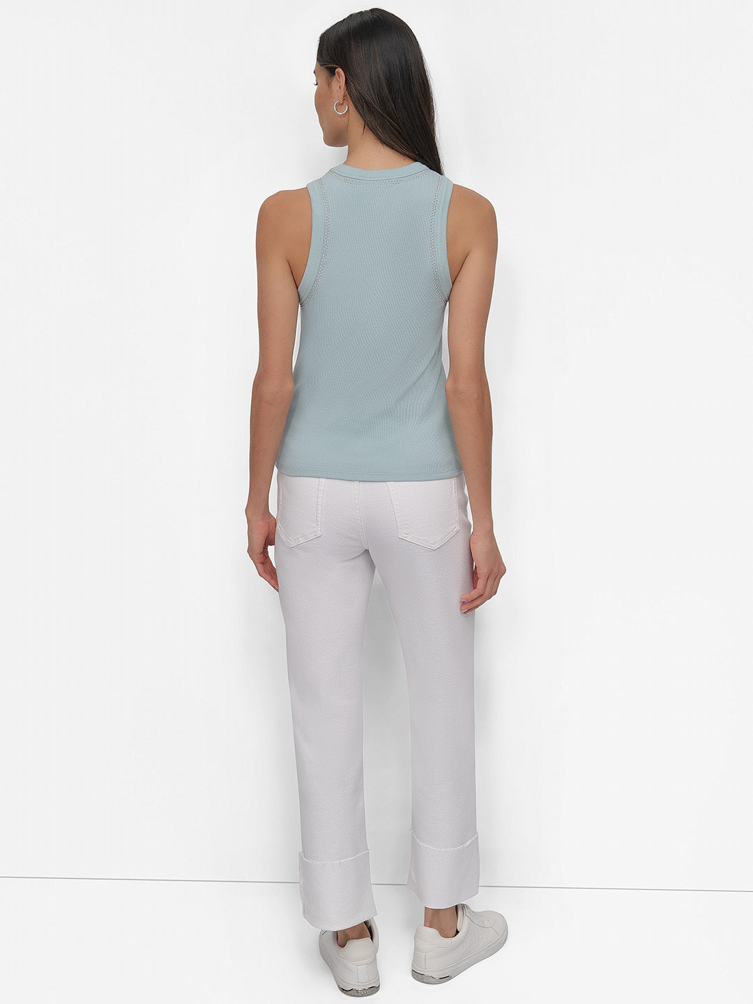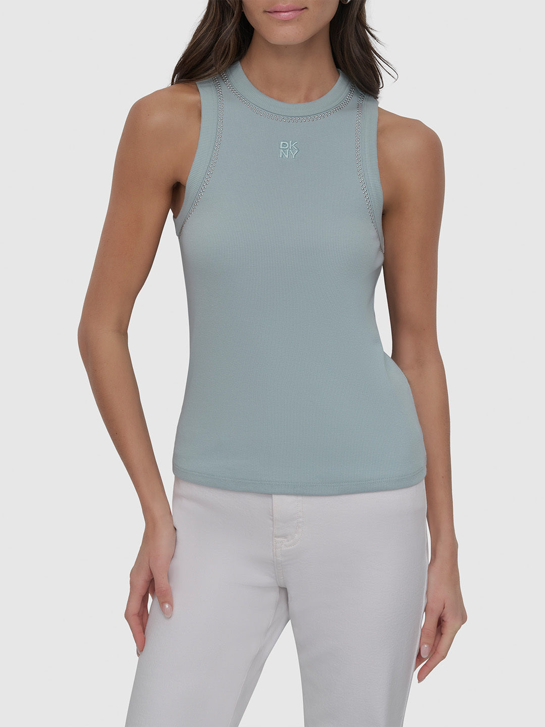 Discover the perfect blend of style and comfort with our blue tank top, designed for the modern woman. This fitted piece features an elegant embellished pattern that adds a touch of sophistication to any outfit. Crafted from soft, breathable cotton fabric, it ensures all-day comfort. The sleeveless design and round neck offer a classic look, while the pull-on closure provides ease of wear. With its stretchable material, this tank top moves with you, making it ideal for both casual outings and active days. Elevate your wardrobe with this versatile essential.