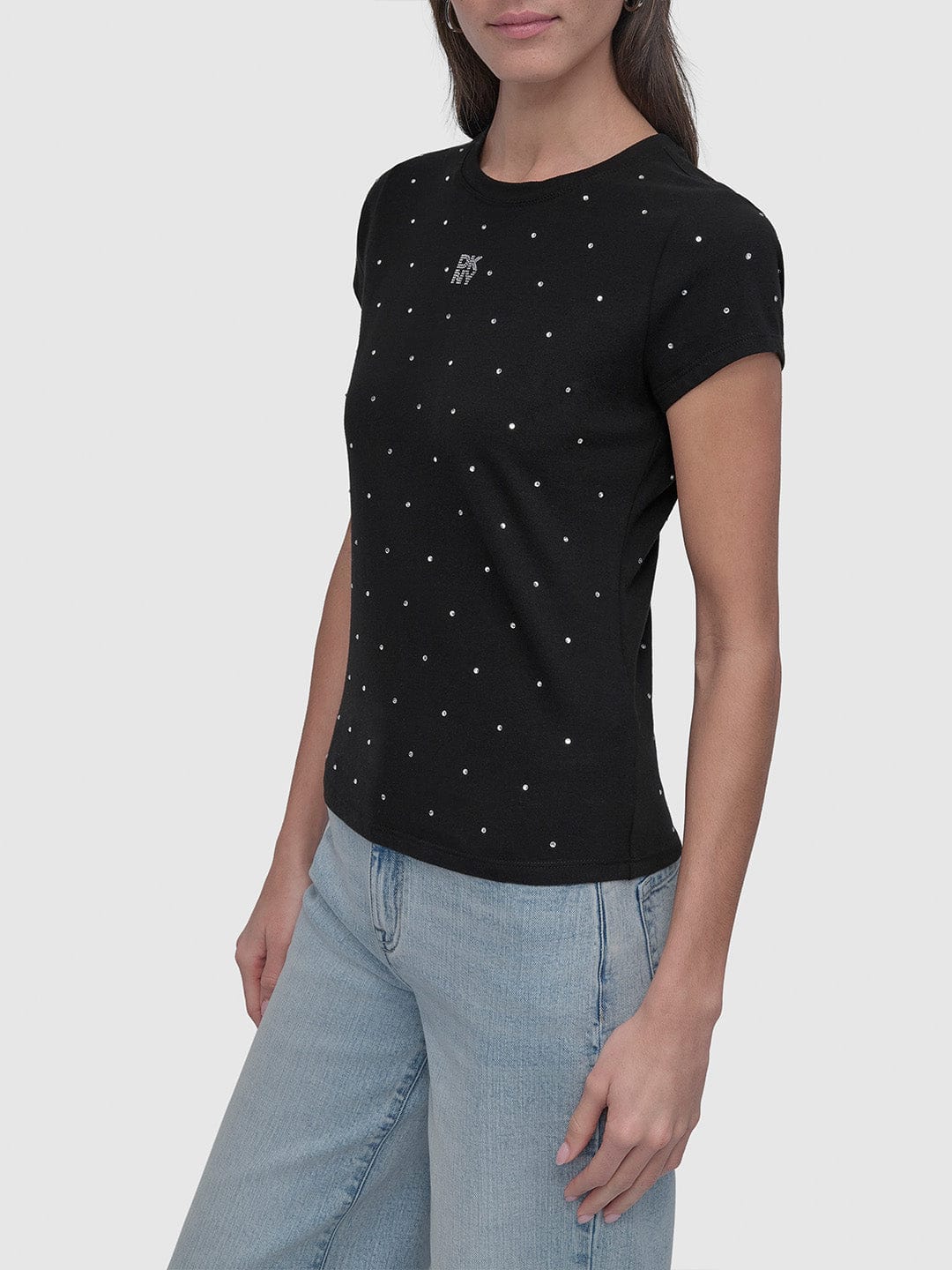 Discover the perfect blend of style and comfort with our women's black t-shirt. Designed in a regular fit, this embellished pattern tee offers a chic look that's ideal for any casual outing. The short sleeves and round neck provide a classic silhouette, while the cotton blend fabric ensures breathability and softness against your skin. With its pull-on closure, this t-shirt is easy to wear and versatile for layering. Plus, the stretchable material allows for unrestricted movement, making it a must-have staple in your wardrobe. Elevate your everyday ensemble with this effortlessly stylish piece.