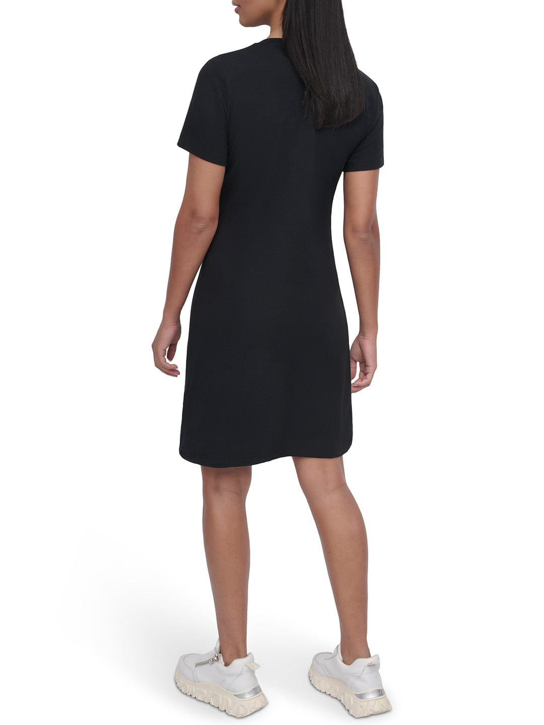 Discover effortless style with our black t-shirt dress, designed for the modern woman. This straight-fit dress features a solid pattern and half sleeves, offering a timeless look. The flattering v-neckline adds a touch of elegance, while the cotton blend fabric ensures comfort and breathability. With its pull-on closure, this dress is easy to wear and perfect for any occasion. The stretchable material provides flexibility and ease of movement, making it ideal for both casual outings and relaxed evenings. Elevate your wardrobe with this versatile piece that combines simplicity with sophistication.