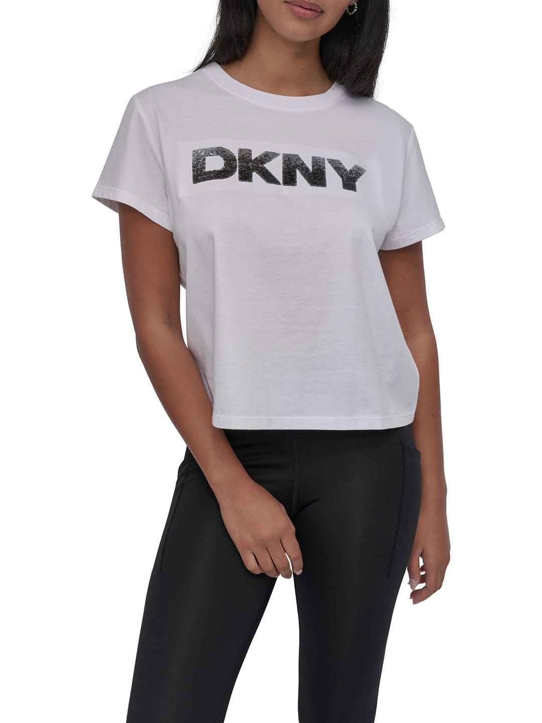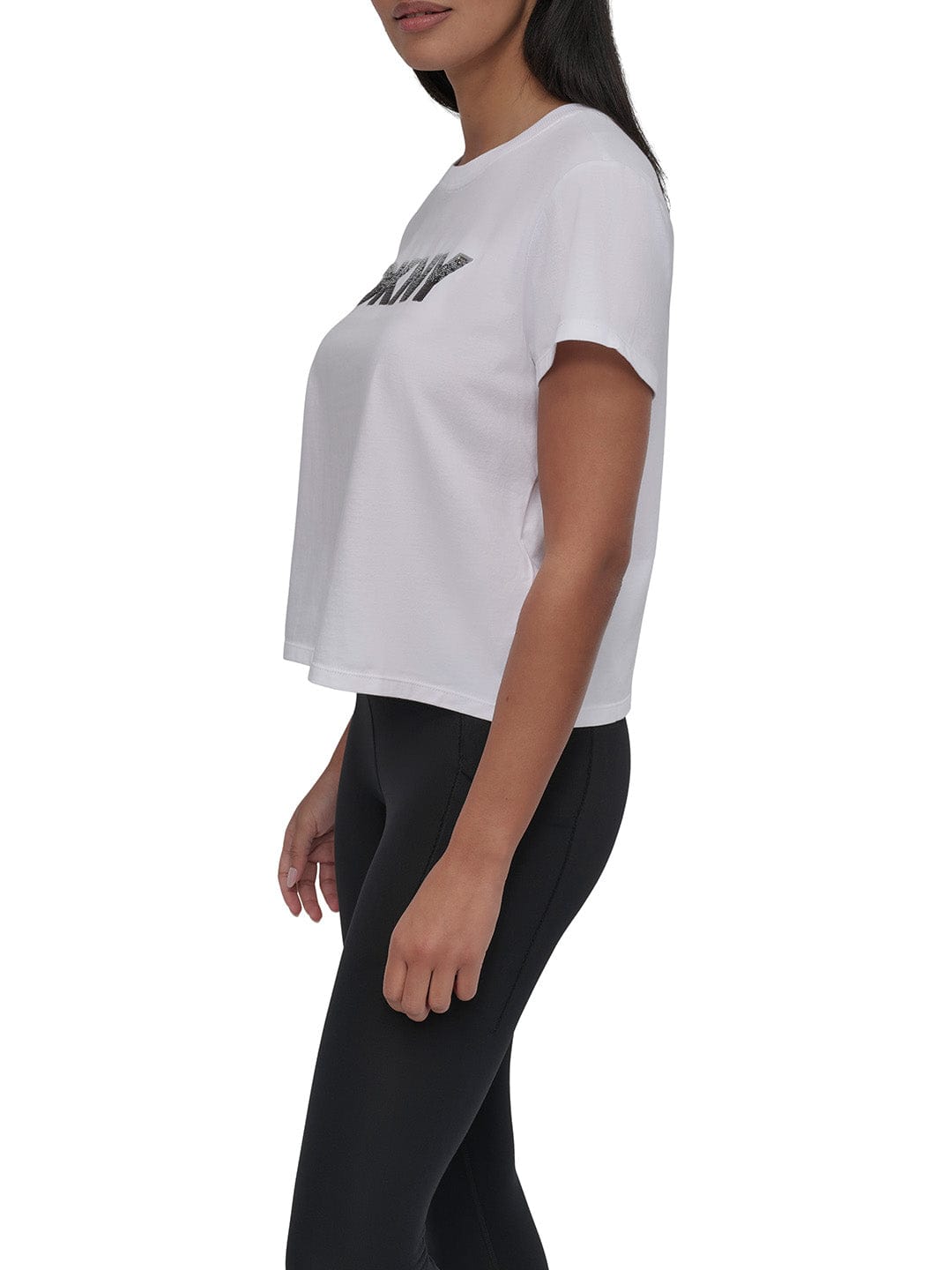Discover the perfect blend of comfort and style with our women's white boxy fit t-shirt. Crafted from pure cotton, this short sleeve tee offers a breathable and soft feel, ideal for everyday wear. The round neck design adds a classic touch, while the pull-on closure ensures easy wearability. Featuring a solid pattern, this t-shirt is elevated by a subtle sequin logo that adds a hint of sparkle. Its stretchable fabric provides flexibility and ease of movement, making it a versatile addition to your wardrobe. Perfect for pairing with jeans or skirts for a chic casual look.