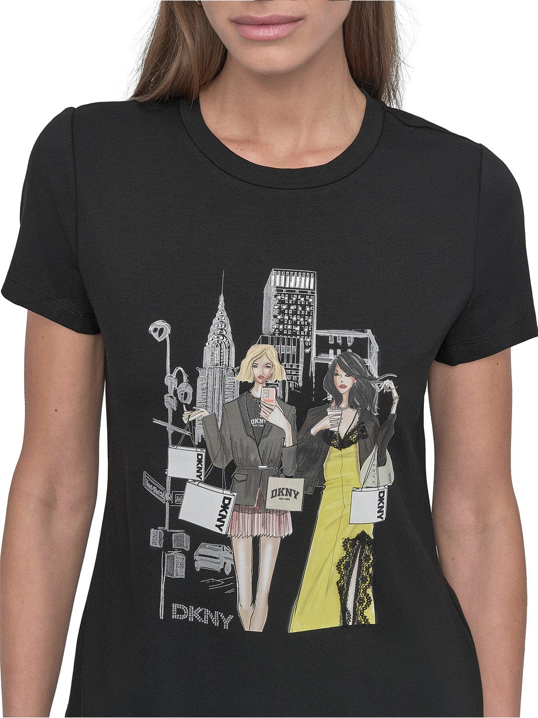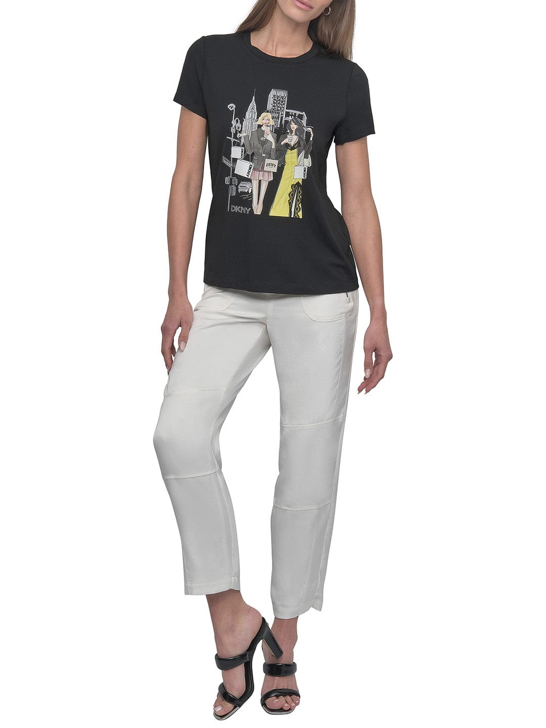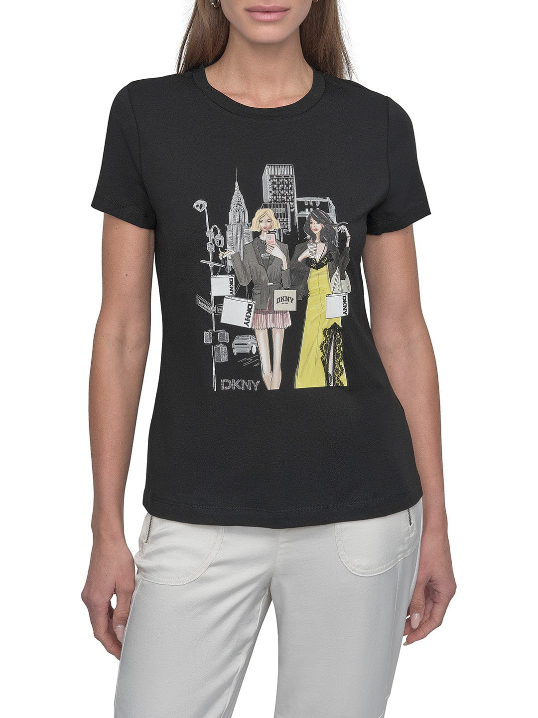 Discover the perfect blend of style and comfort with our women's black t-shirt. Designed in a regular fit, this short sleeve tee features a chic round neck and is crafted from a soft cotton blend fabric, ensuring all-day comfort. The eye-catching placement print adds a trendy touch, making it a versatile addition to your wardrobe. Its stretchable material offers ease of movement, while the pull-on closure ensures effortless wear. Ideal for casual outings or relaxed weekends, this t-shirt pairs beautifully with jeans or skirts for a polished yet laid-back look. Elevate your everyday style effortlessly.