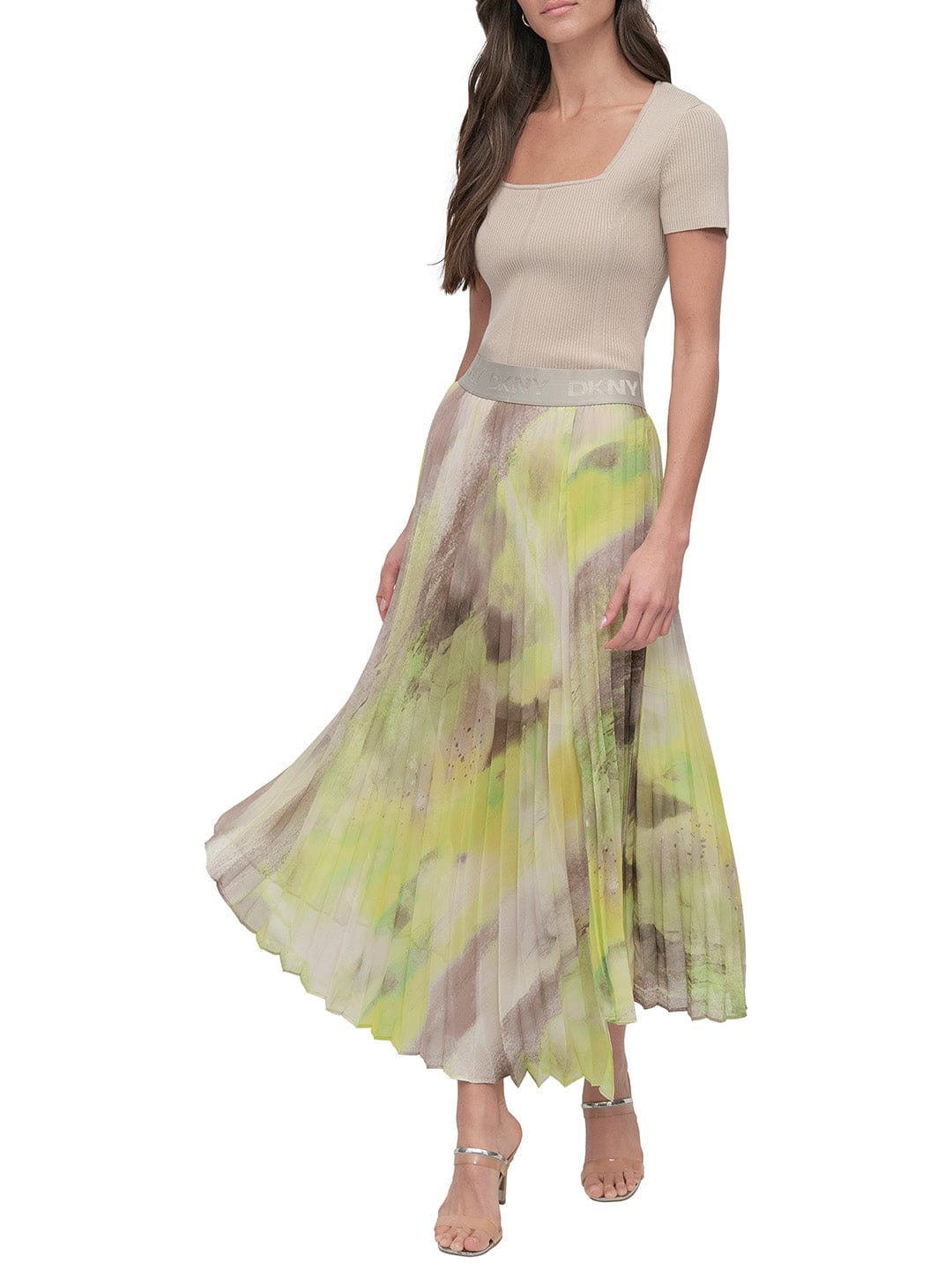Discover effortless elegance with our pleated midi skirt in a vibrant multi-color palette. Designed for the modern woman, this skirt features a flattering flare fit that gracefully drapes with every step. The high-rise waist is complemented by an elastic closure, ensuring comfort and ease of wear throughout the day. Crafted from premium polyester fabric, it offers durability and a soft touch against the skin. The eye-catching printed pattern adds a playful yet sophisticated touch, making it perfect for both casual outings and more formal occasions. Pair it with your favorite blouse or top to create versatile looks that transition seamlessly from day to night. Embrace style and comfort with this must-have addition to your wardrobe.