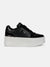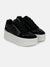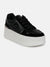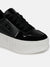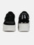 The women's black solid round toe lace-up sneakers offer a perfect blend of style and comfort. Featuring a sleek black design, these sneakers are both versatile and chic. The round toe and lace-up closure ensure a secure fit, making them an ideal choice for the modern woman seeking fashionable and comfortable footwear.