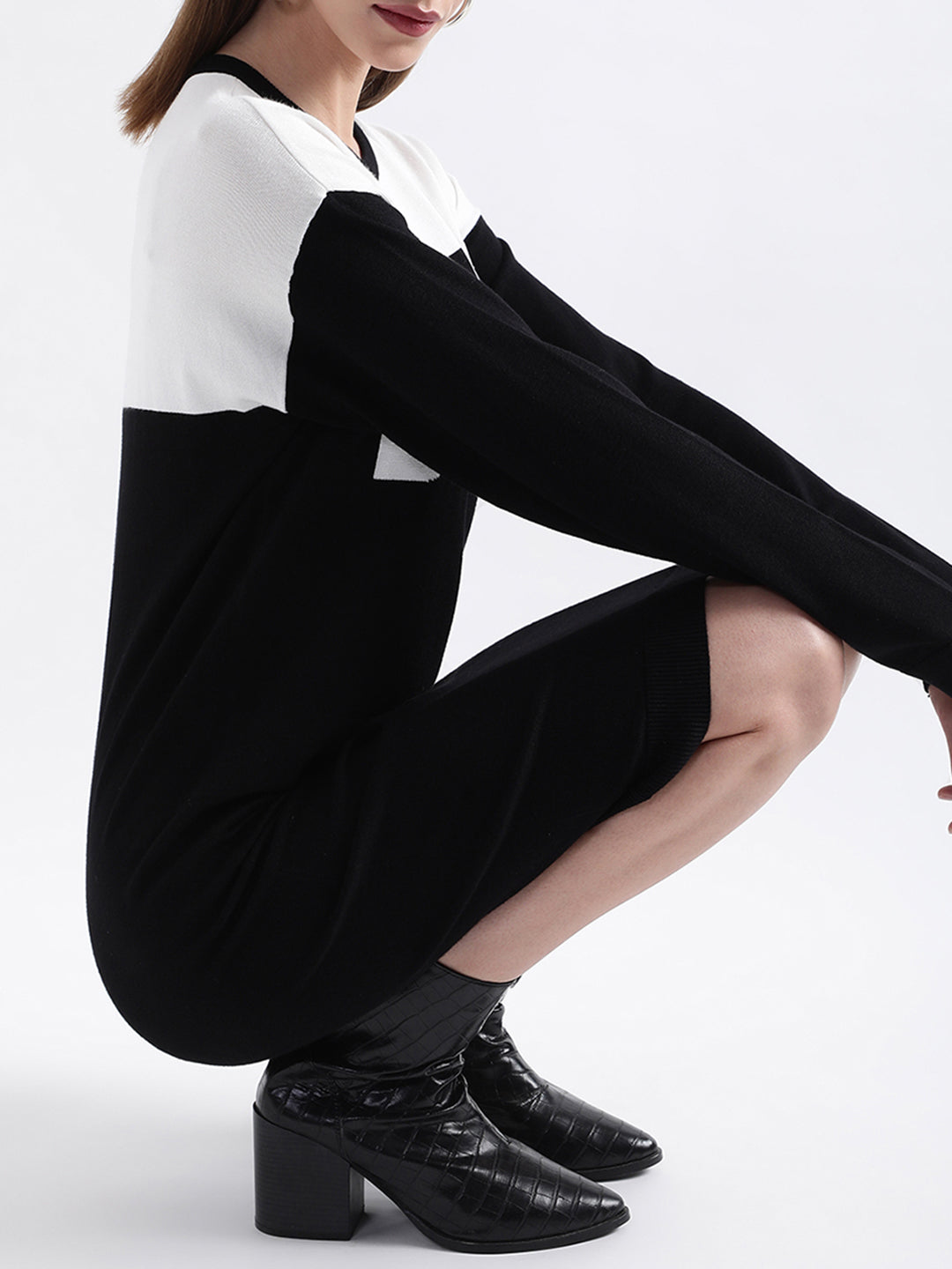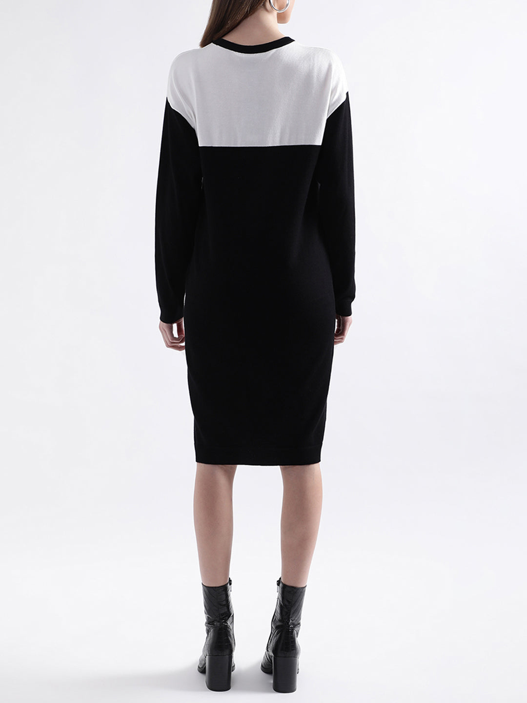 DKNY Women Black Solid Round Neck Dress