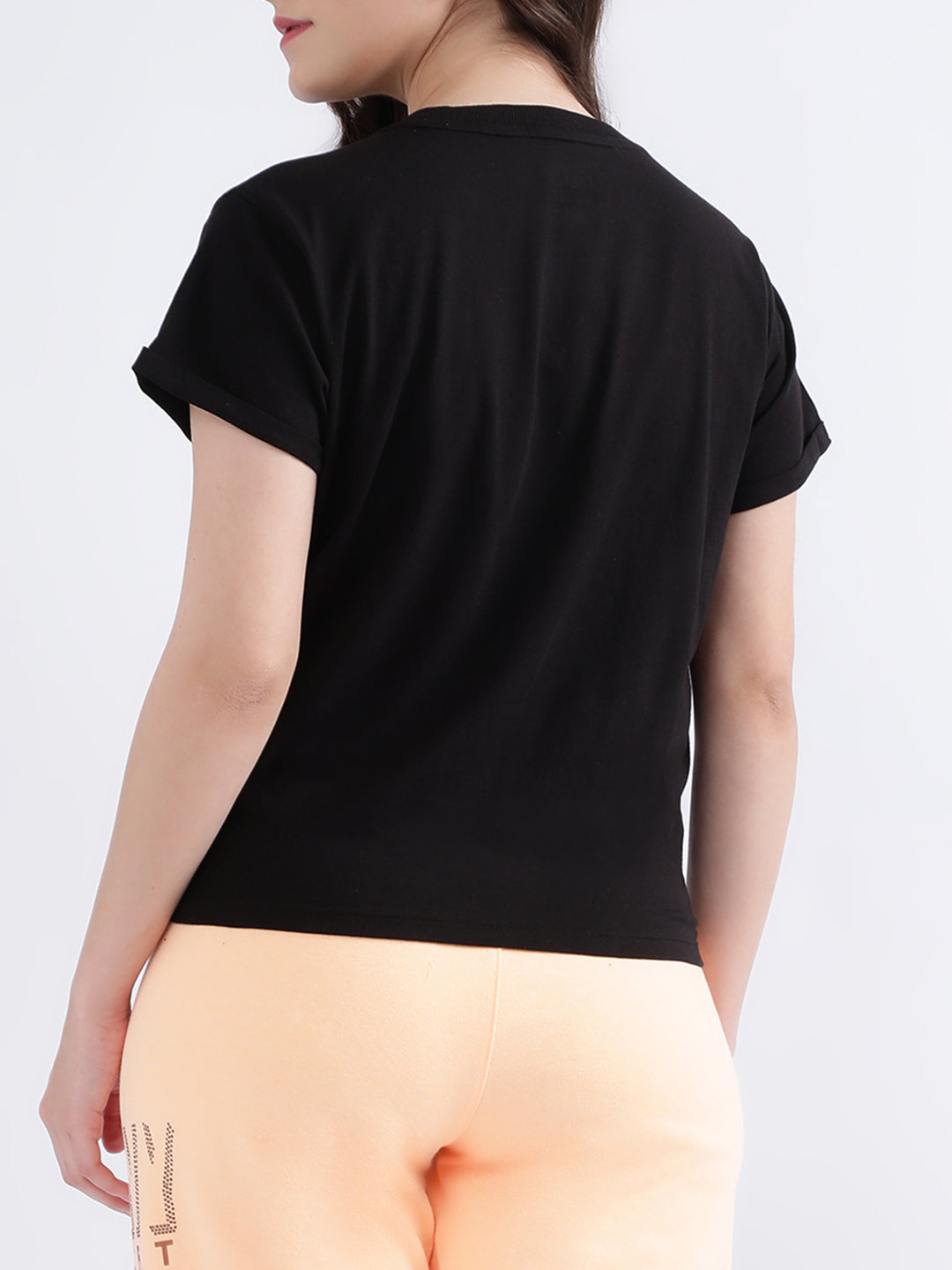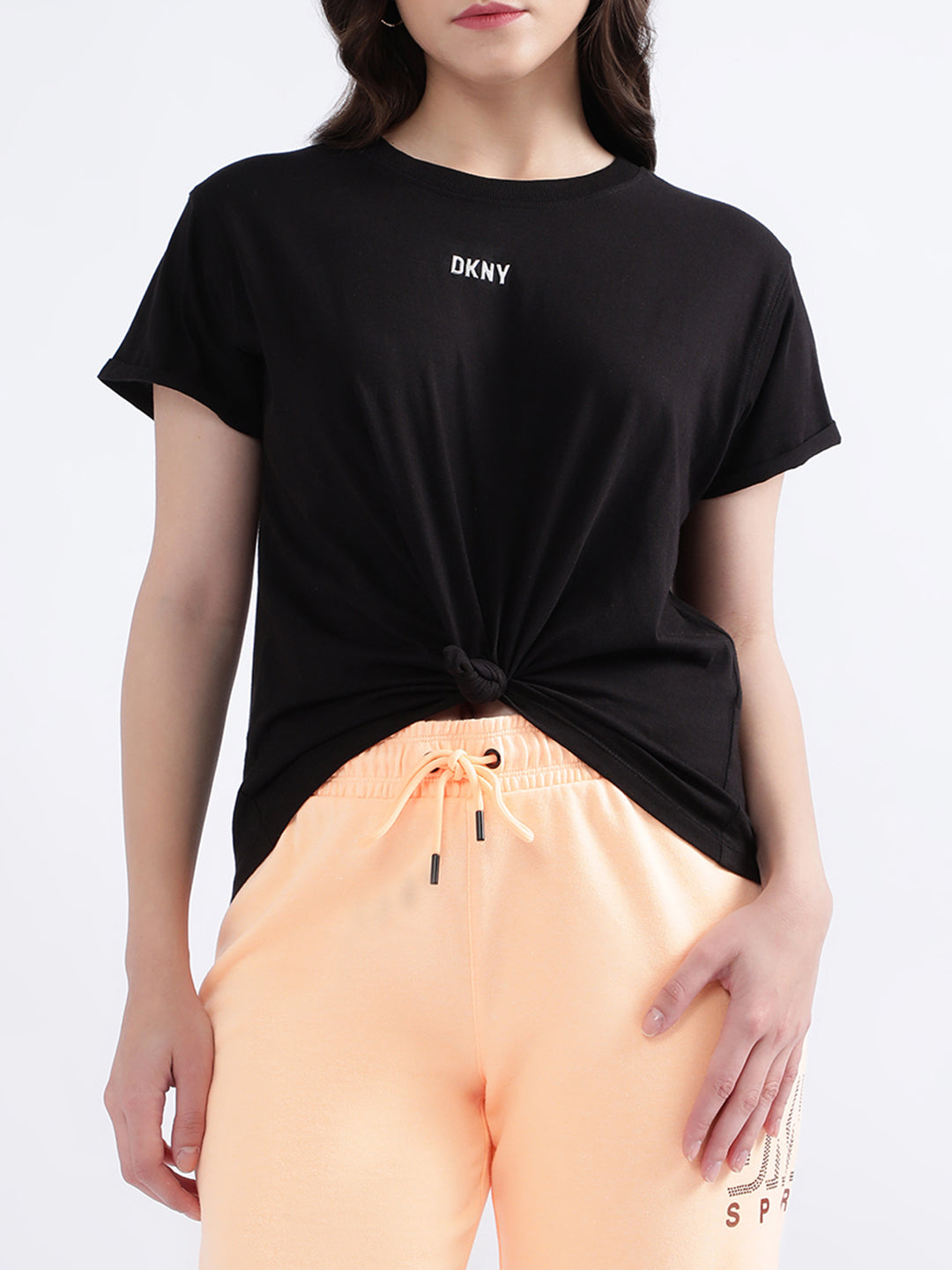 The DKNY Womens Black Solid T-Shirt is a wardrobe staple that every fashion-forward woman needs