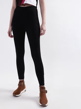 Get ready to make a statement with these DKNY Women's Black Solid Leggings! Made with a comfortable blend of 90% cotton and 10% spandex/elastane, these iconic leggings are perfect for any occasion