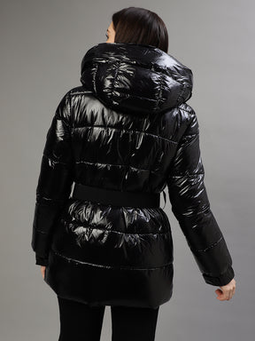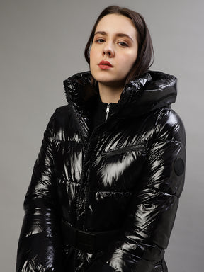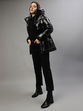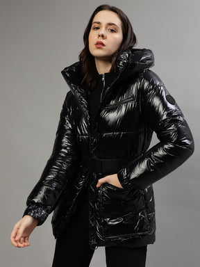 Women Solid Hooded Full Sleeves Puffer Jacket