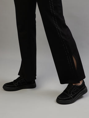 Introducing our sleek black trouser, designed with a regular fit for ultimate comfort. Its solid pattern adds a touch of sophistication to any outfit. Elevate your style effortlessly with this versatile wardrobe essential.