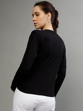 Introducing our classic black T-shirt, designed with a round neckline and full sleeves for ultimate comfort. Its regular fit ensures a flattering silhouette, while the solid black color adds a touch of sophistication. Perfect for any occasion, this versatile piece is a must-have addition to your wardrobe.
