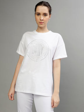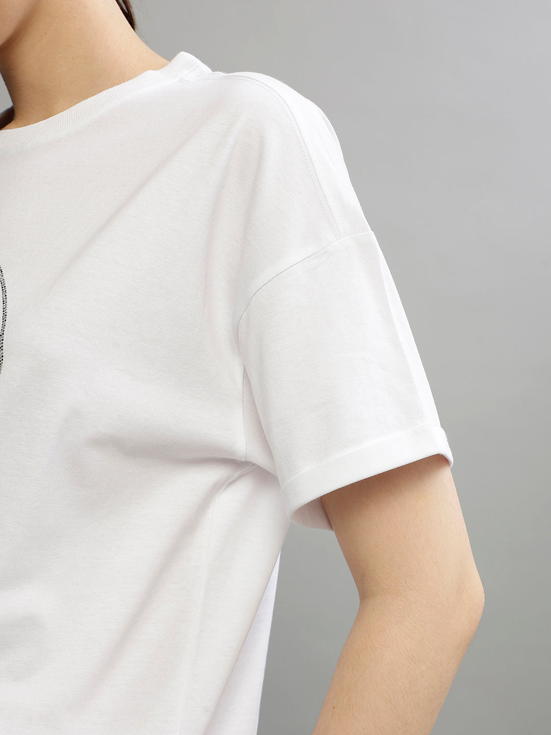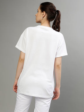 Introducing our stylish white printed t-shirt, designed for ultimate comfort and versatility. With a regular fit, round neckline, and regular sleeves, this trendy piece is perfect for any occasion. The eye-catching printed pattern adds a touch of uniqueness to your outfit. Upgrade your wardrobe with this must-have staple.