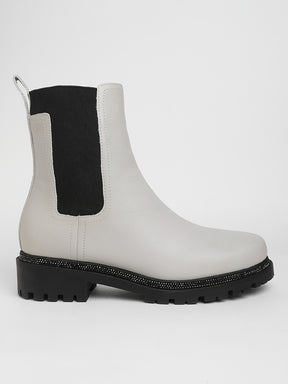 Step out in style with these iconic DKNY Womens Off-White Solid Boots