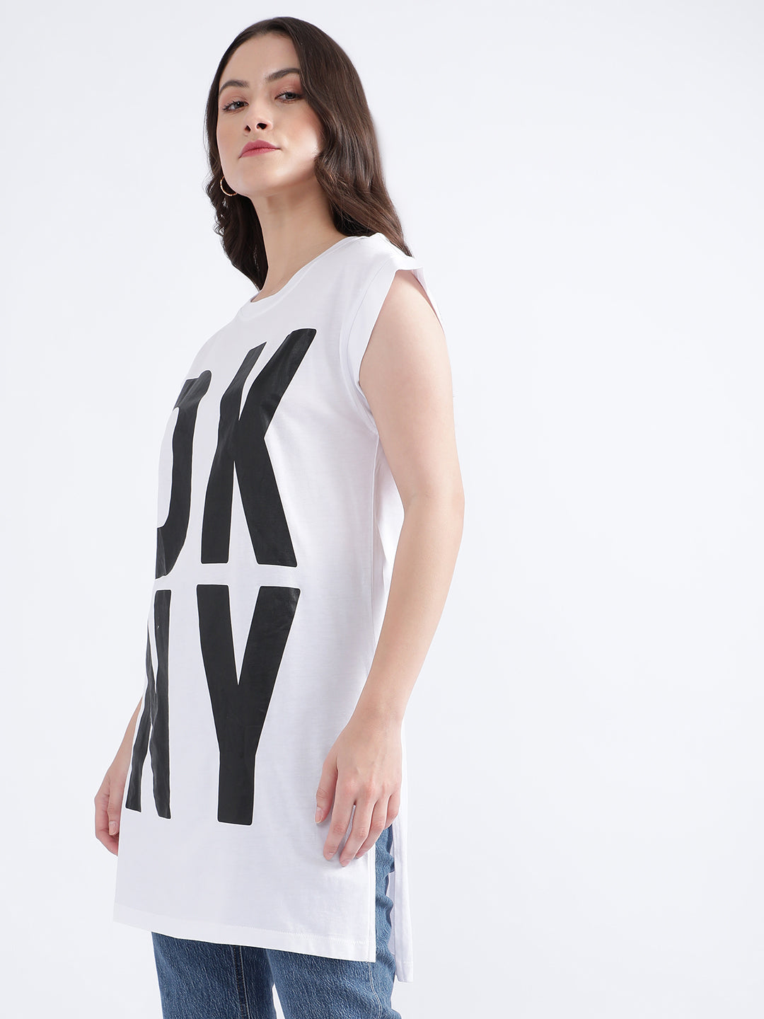 Dkny White Fashion Logo Regular Fit Tshirt