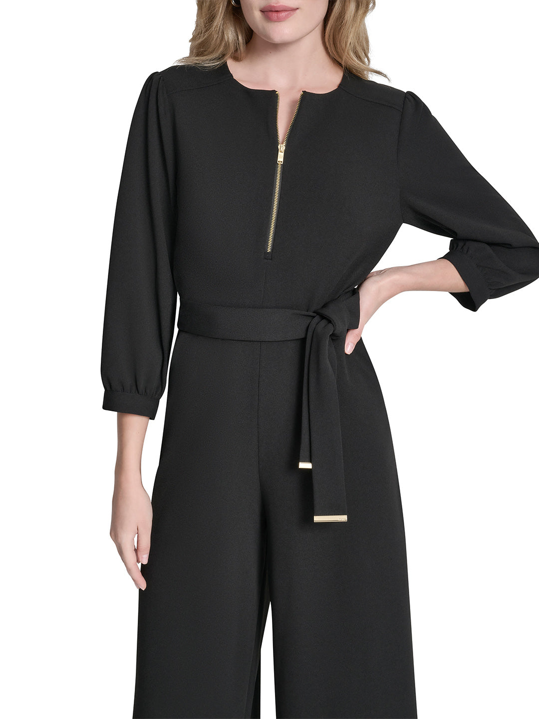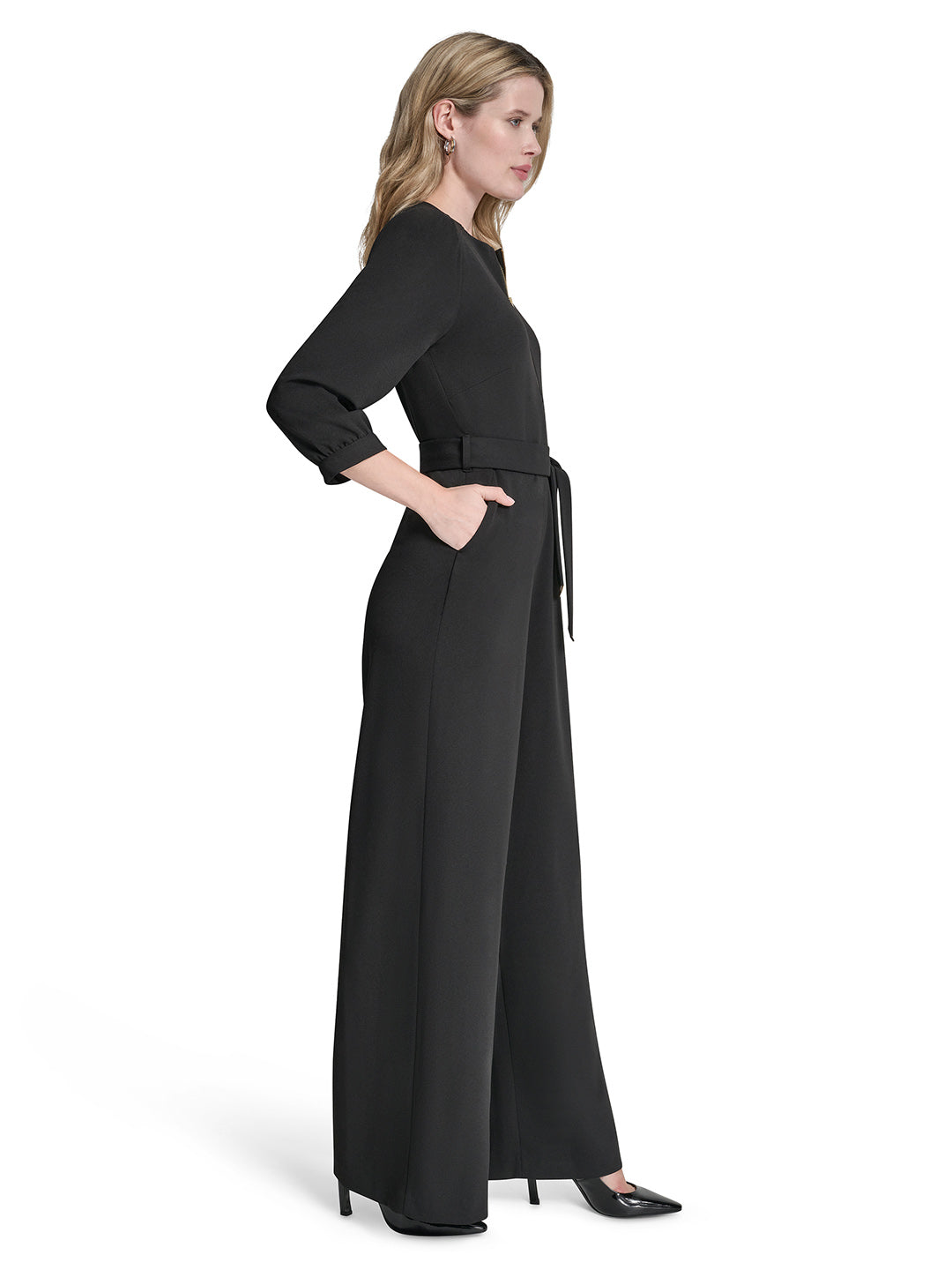 DKNY Womens Black Round Neck Jumpsuit