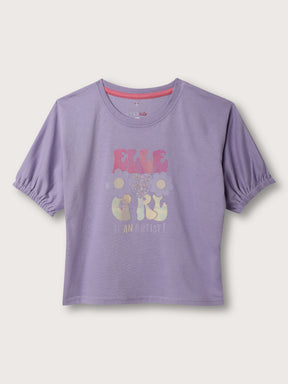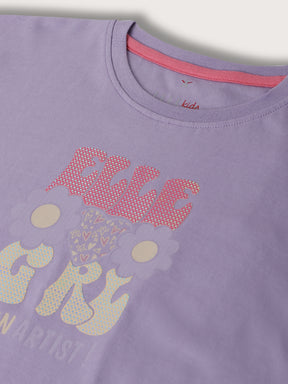• Elle Kids Girls Lilac Solid Round Neck TShirt