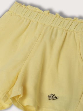 Elle Kids Girls Lemon Yellow Solid Regular Fit Shorts