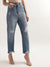 Elle Women Mid Blue Solid Regular Fit Jeans